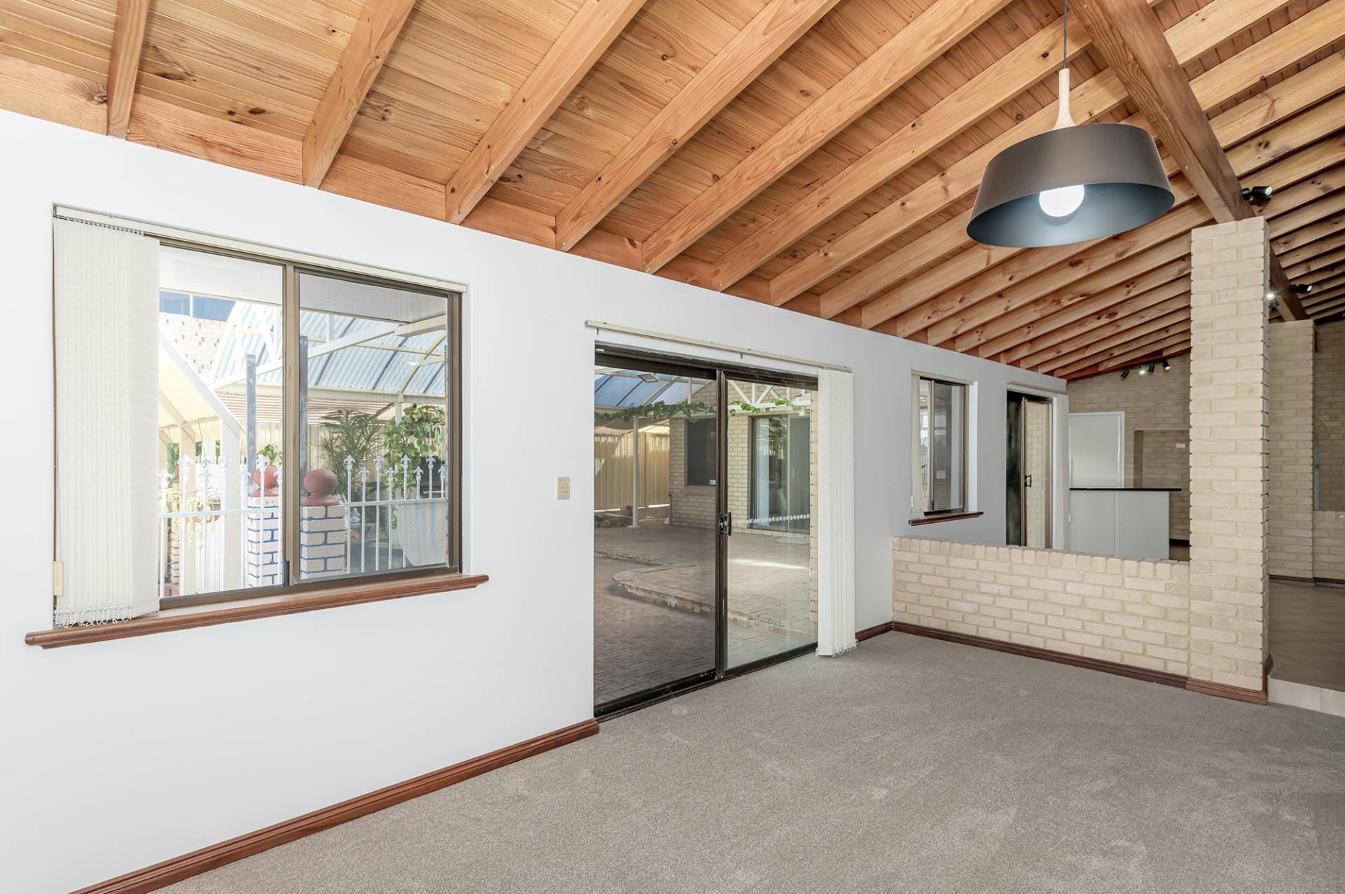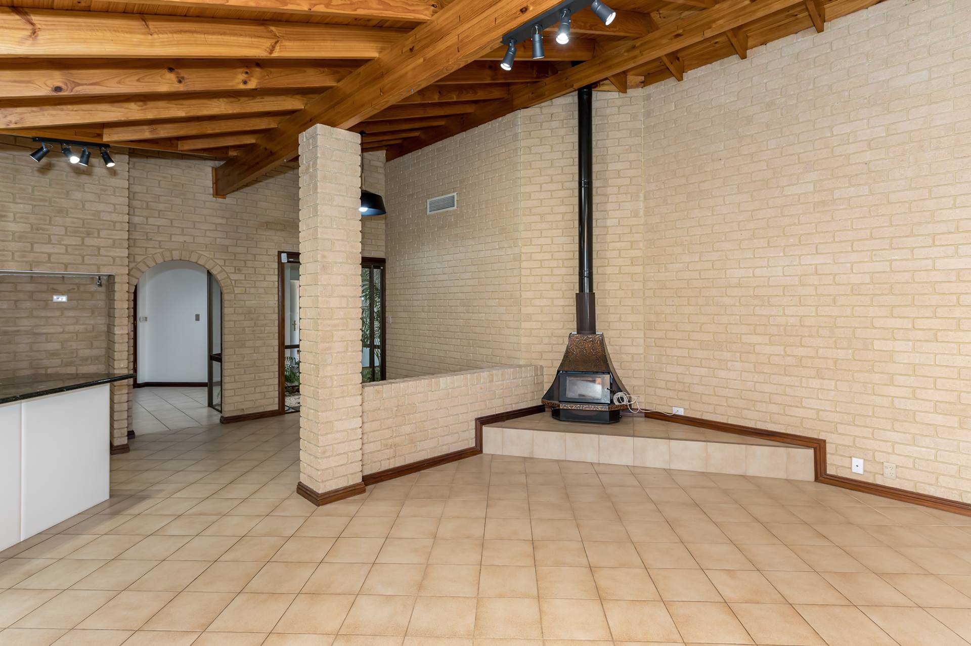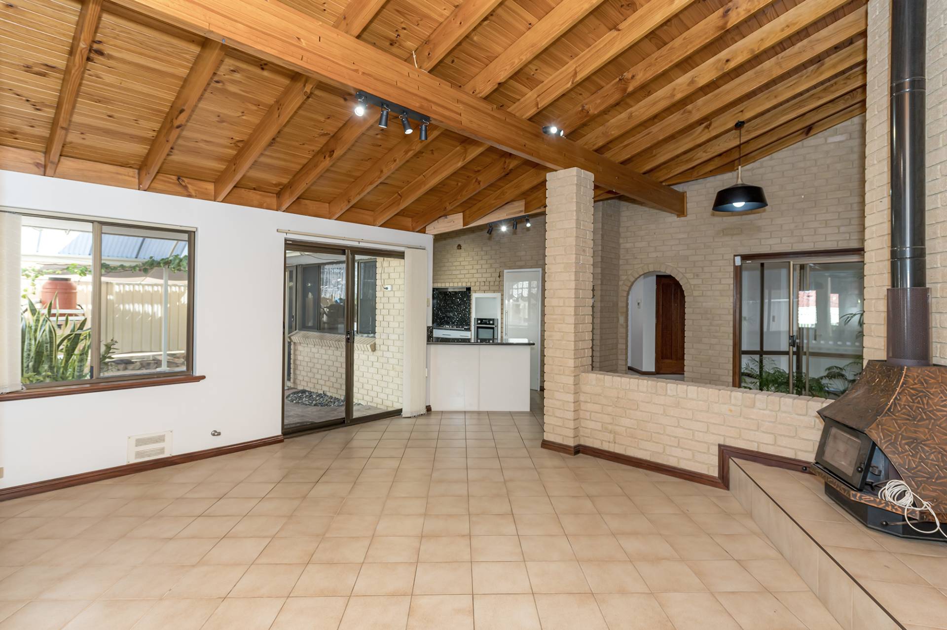 With a high, timber-clad ceiling and pot-belly stove fire in the living area, this space affords a lovely, warm aesthetic and is large enough to accommodate a pool table, making for a fantastic family entertaining area.