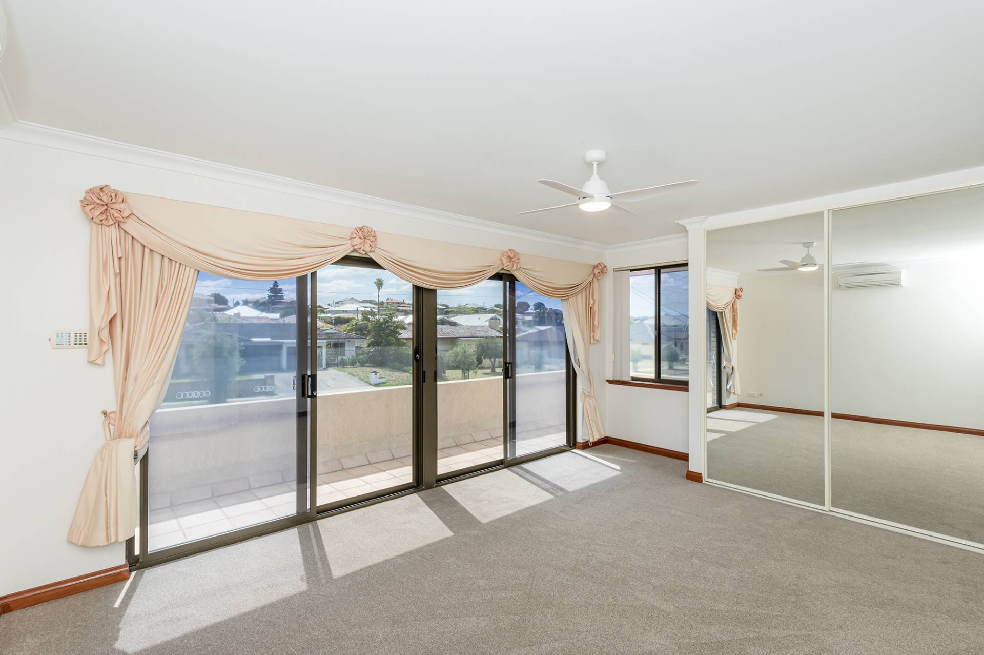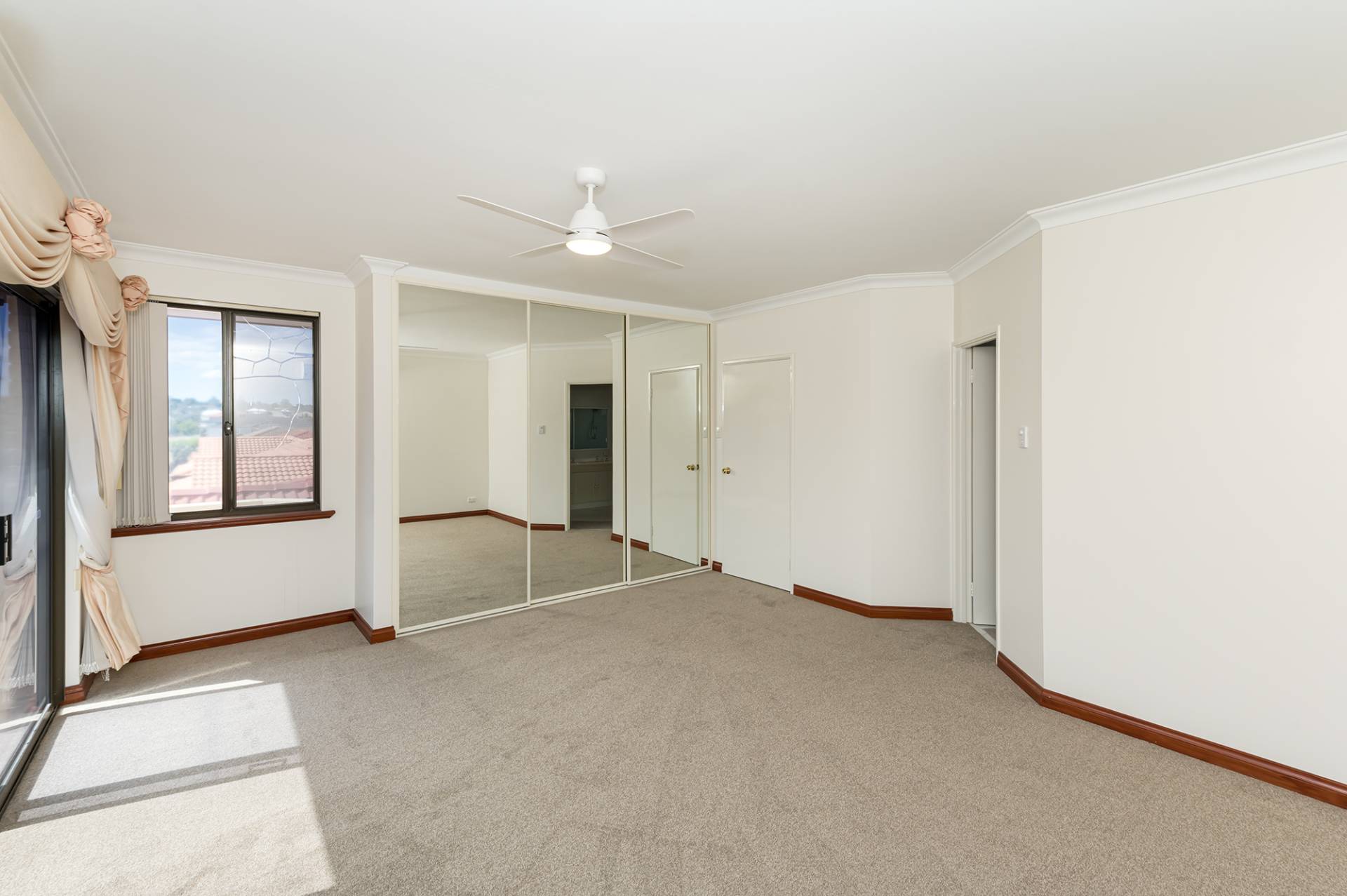 Main bedroom with ensuite, built-in mirrored robes and street-frontage balcony