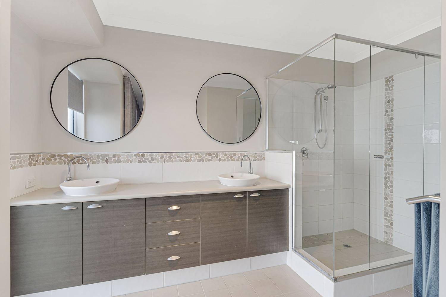 • King-sized Master bedroom suite with a large walk-in wardrobe, stylish ensuite with dual vanities, oversized shower, and separate WC.