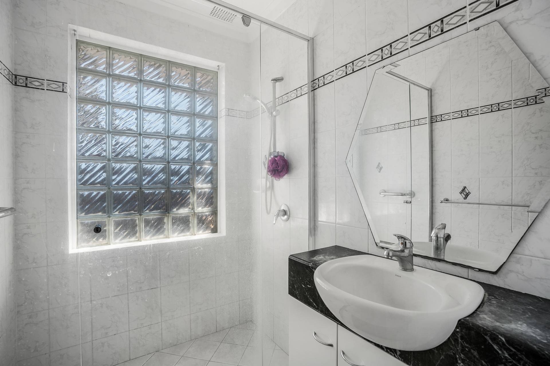- Bathroom has floor to ceiling tiles and oversized shower recess