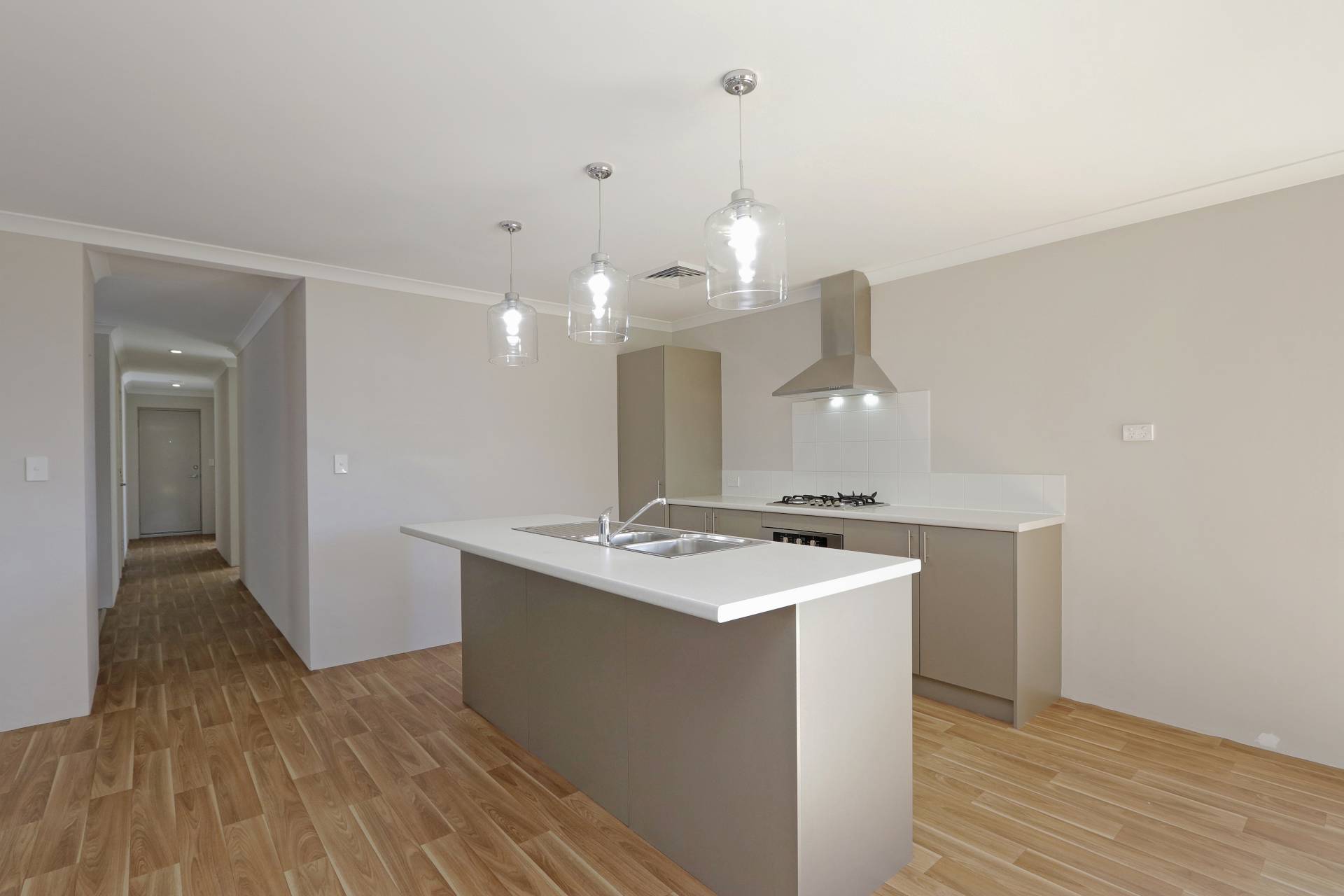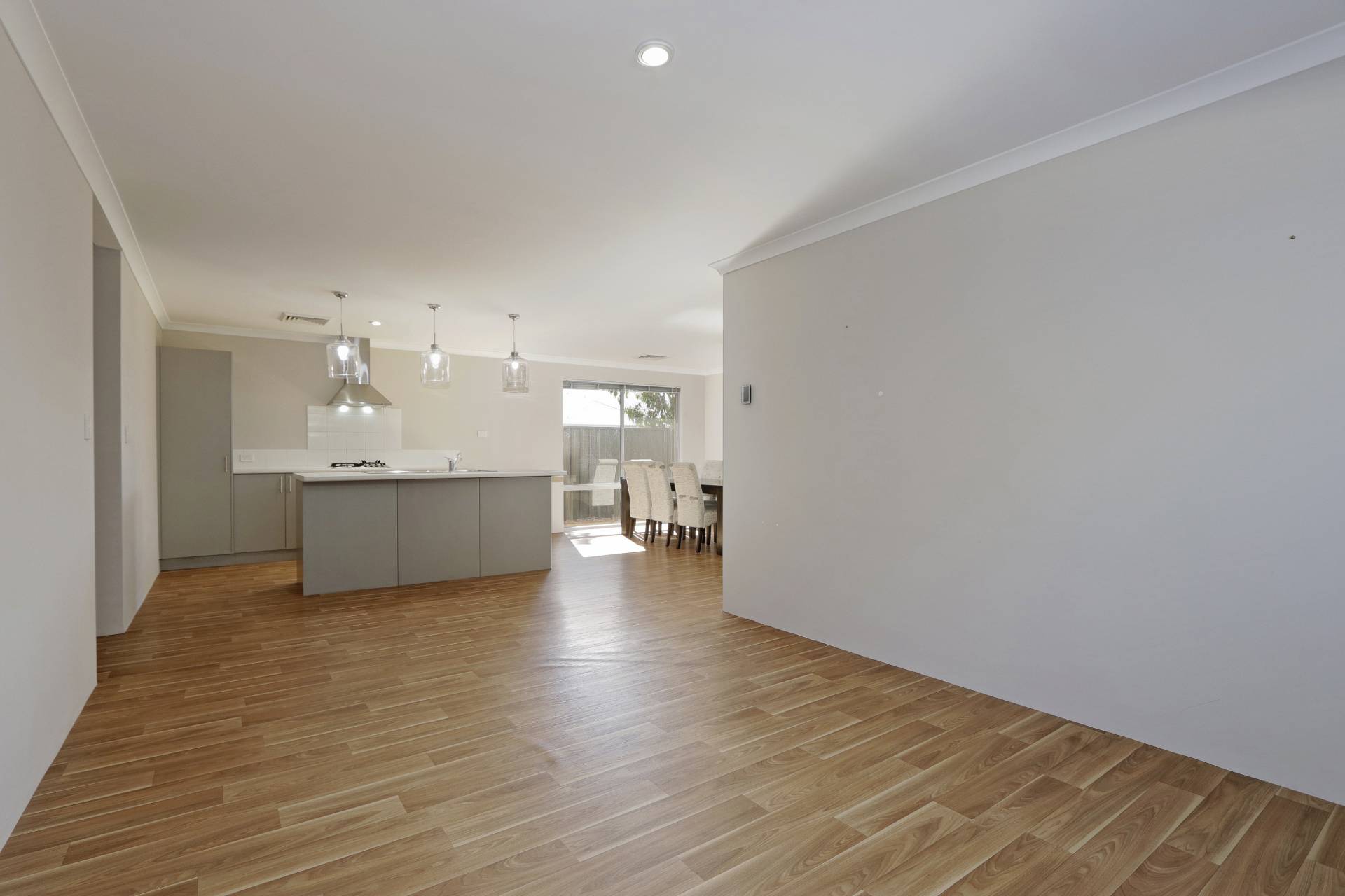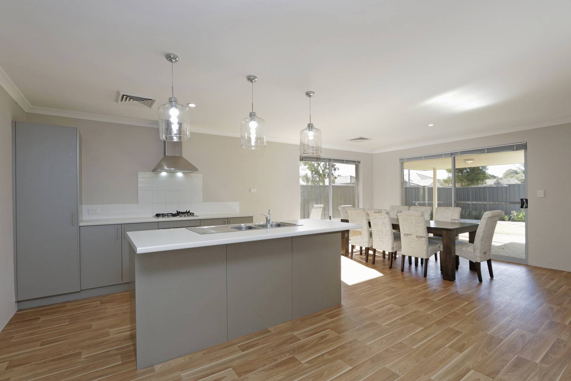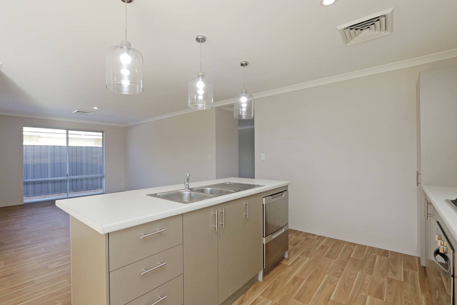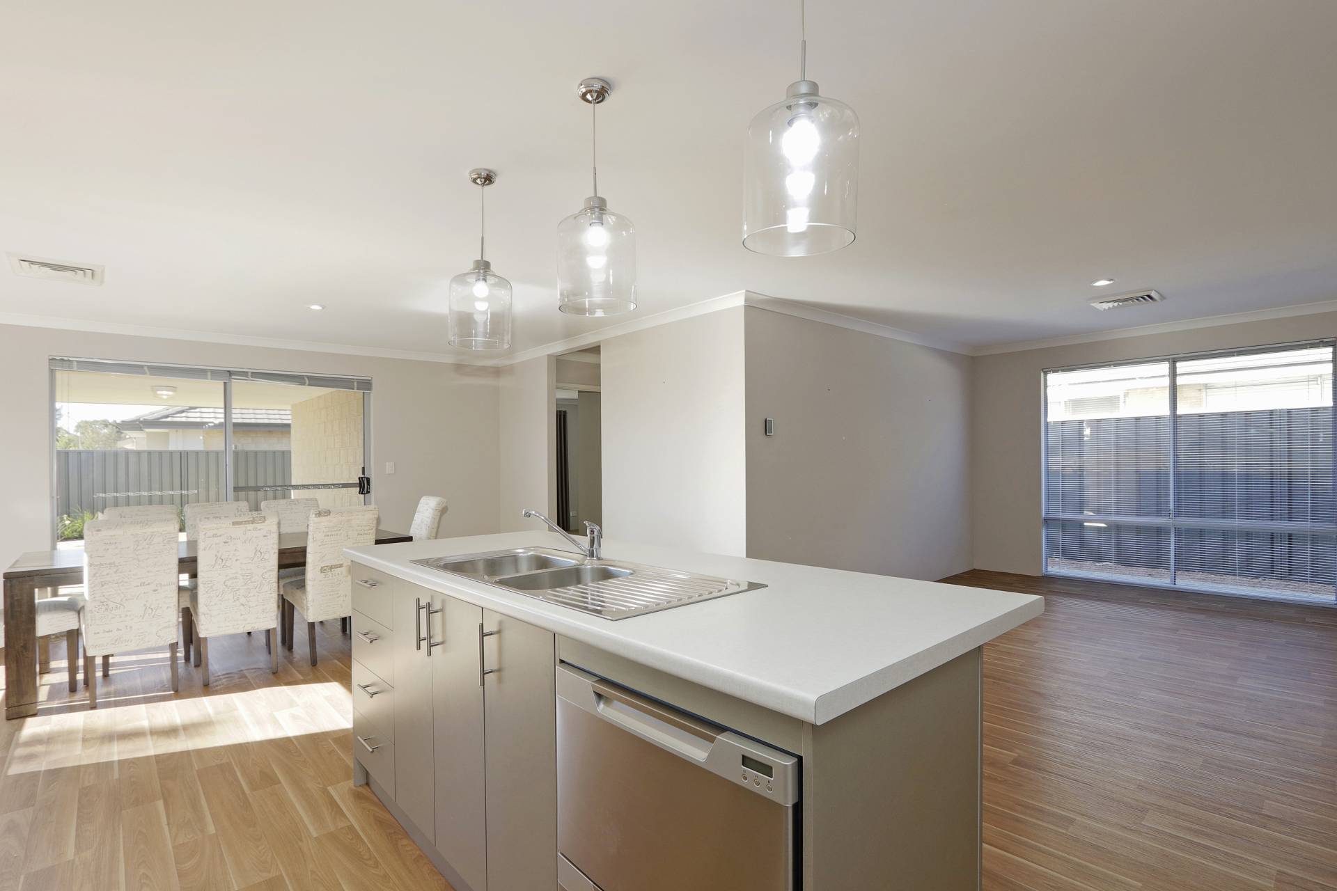 • Kitchen with built in pantry, dishwasher, breakfast bar & pendant lighting