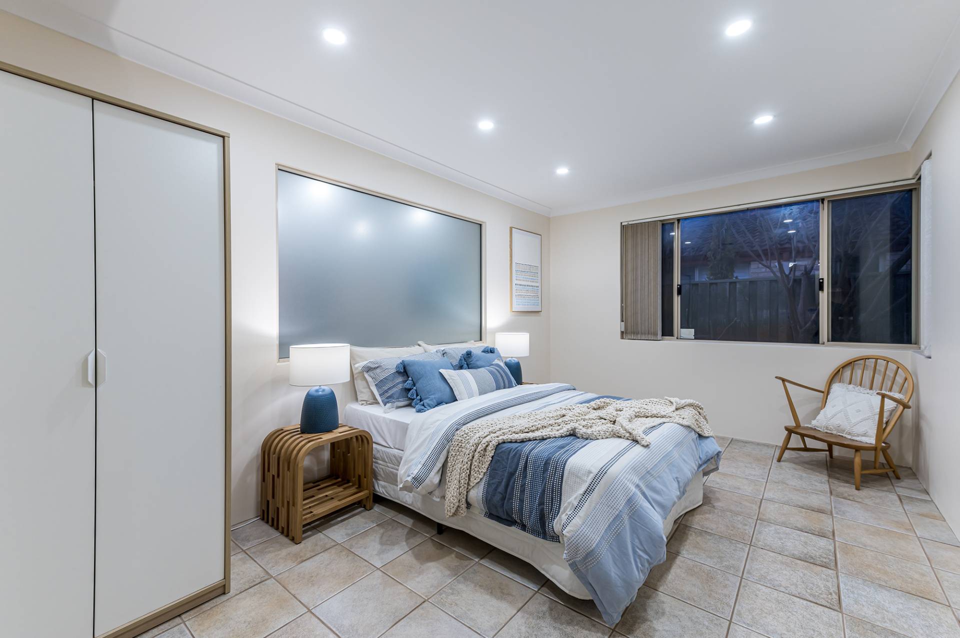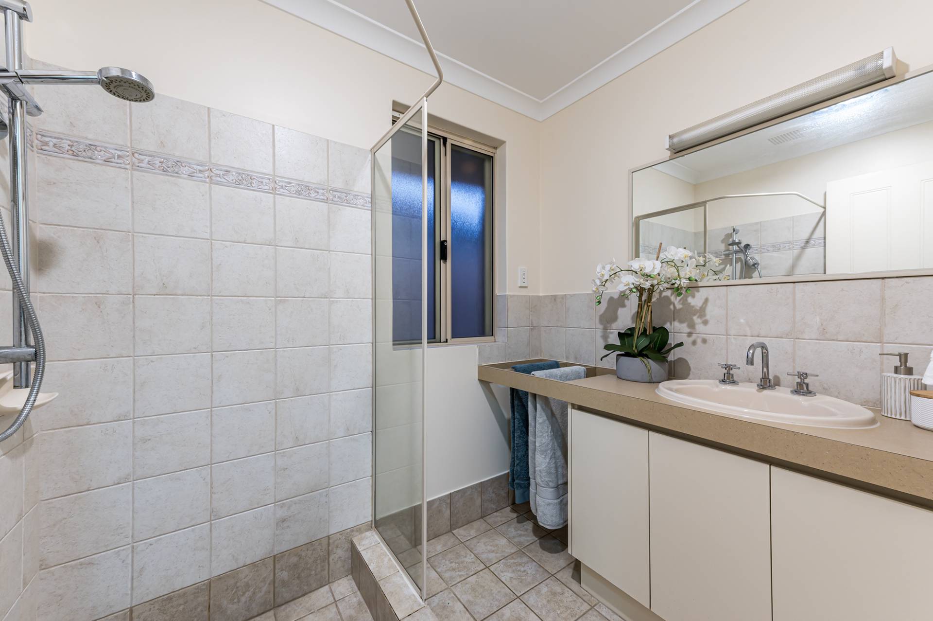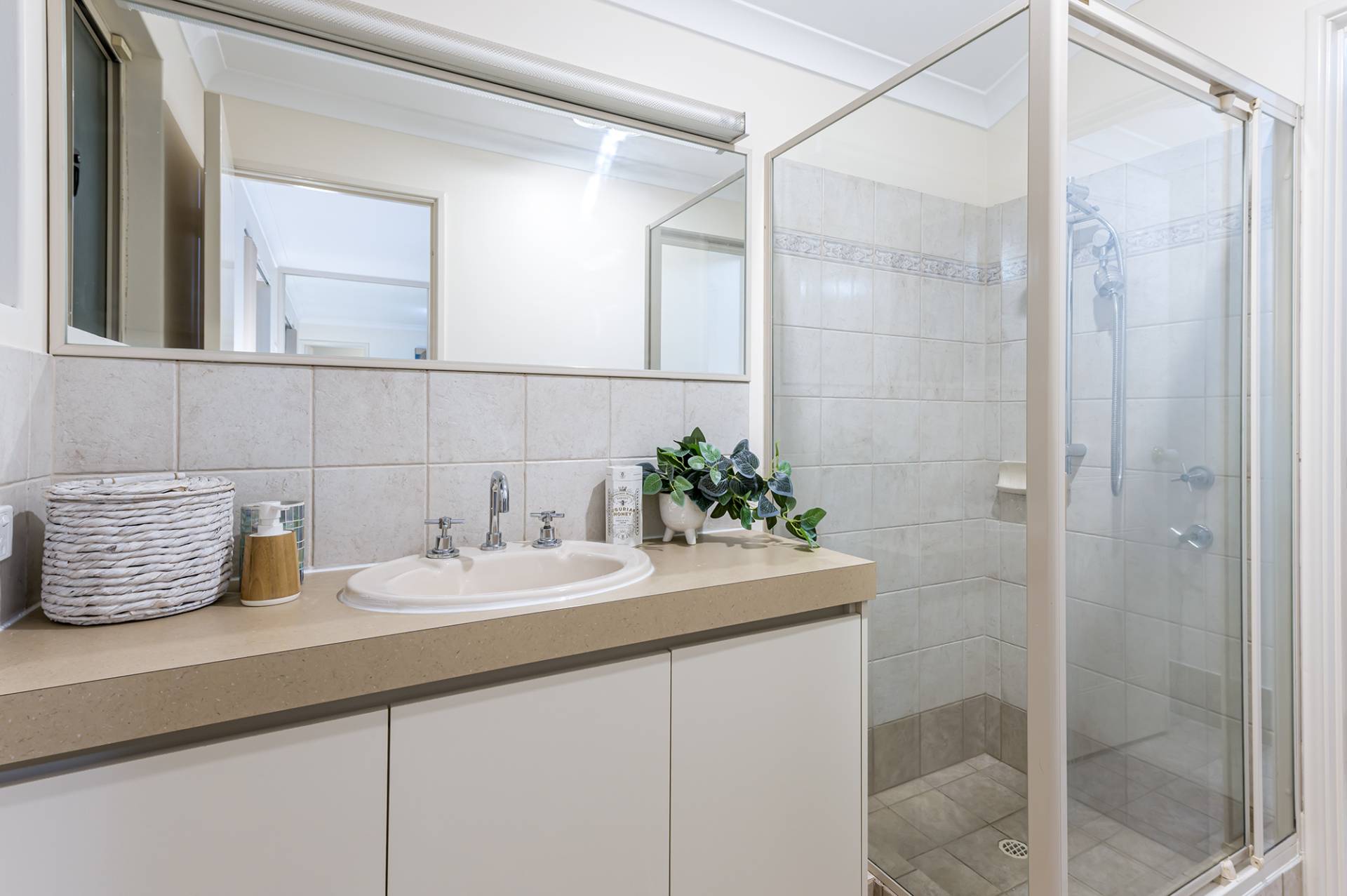 The minor bedrooms are equally noteworthy, one with featuring mirrored built-in robes and air conditioning. These bedrooms share a practical main family bathroom equipped with a separate bath and shower.