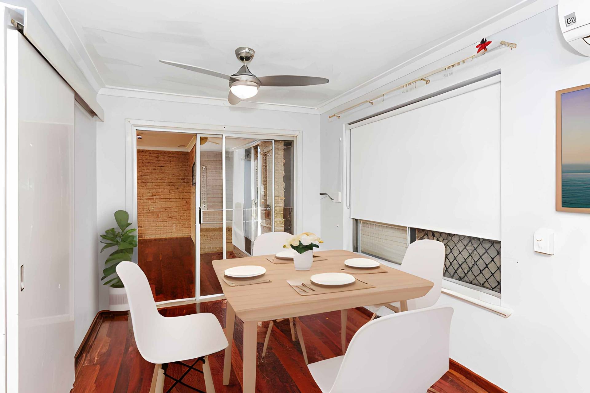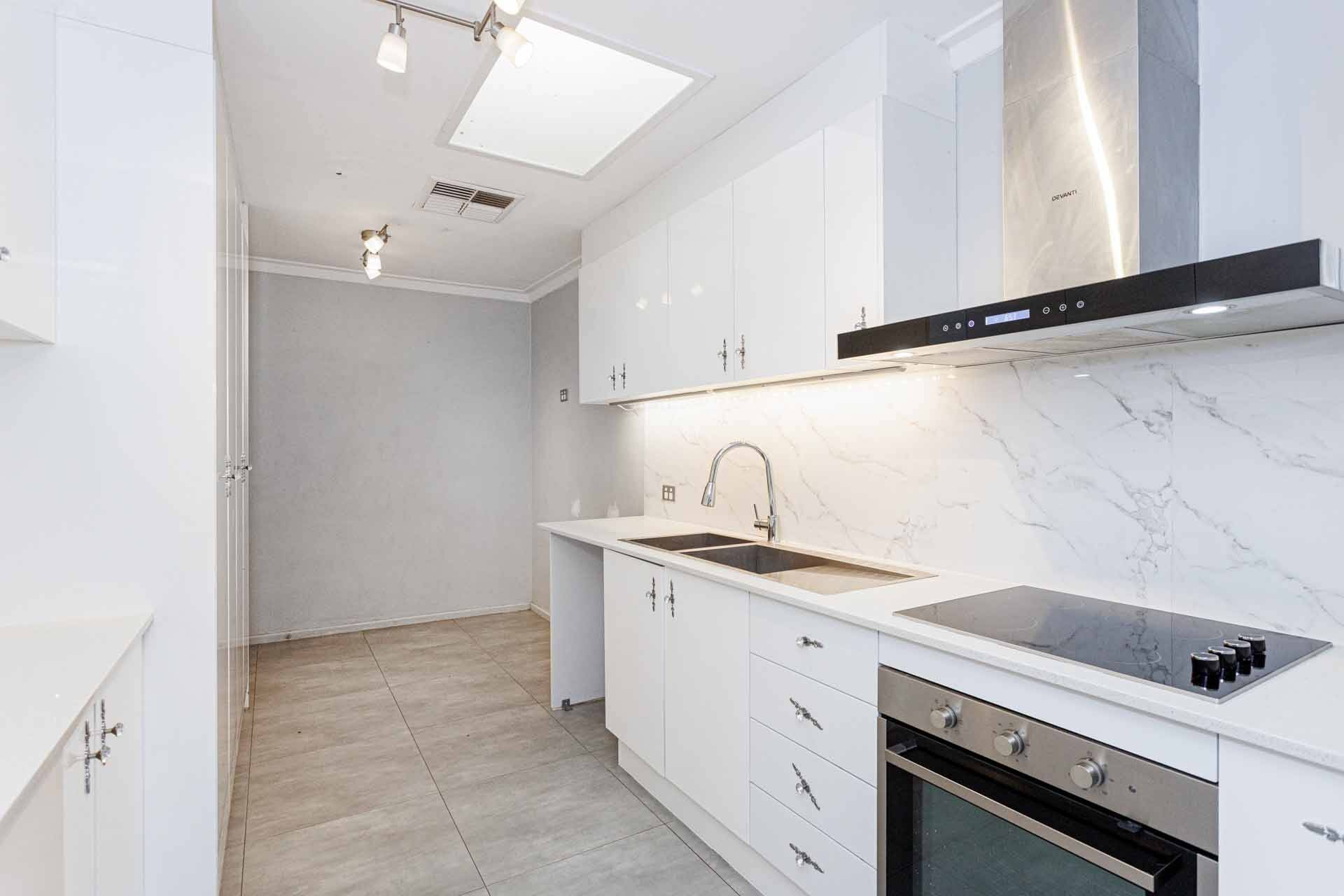 • Modern kitchen with ample cupboard space, rangehood & electric cooktop