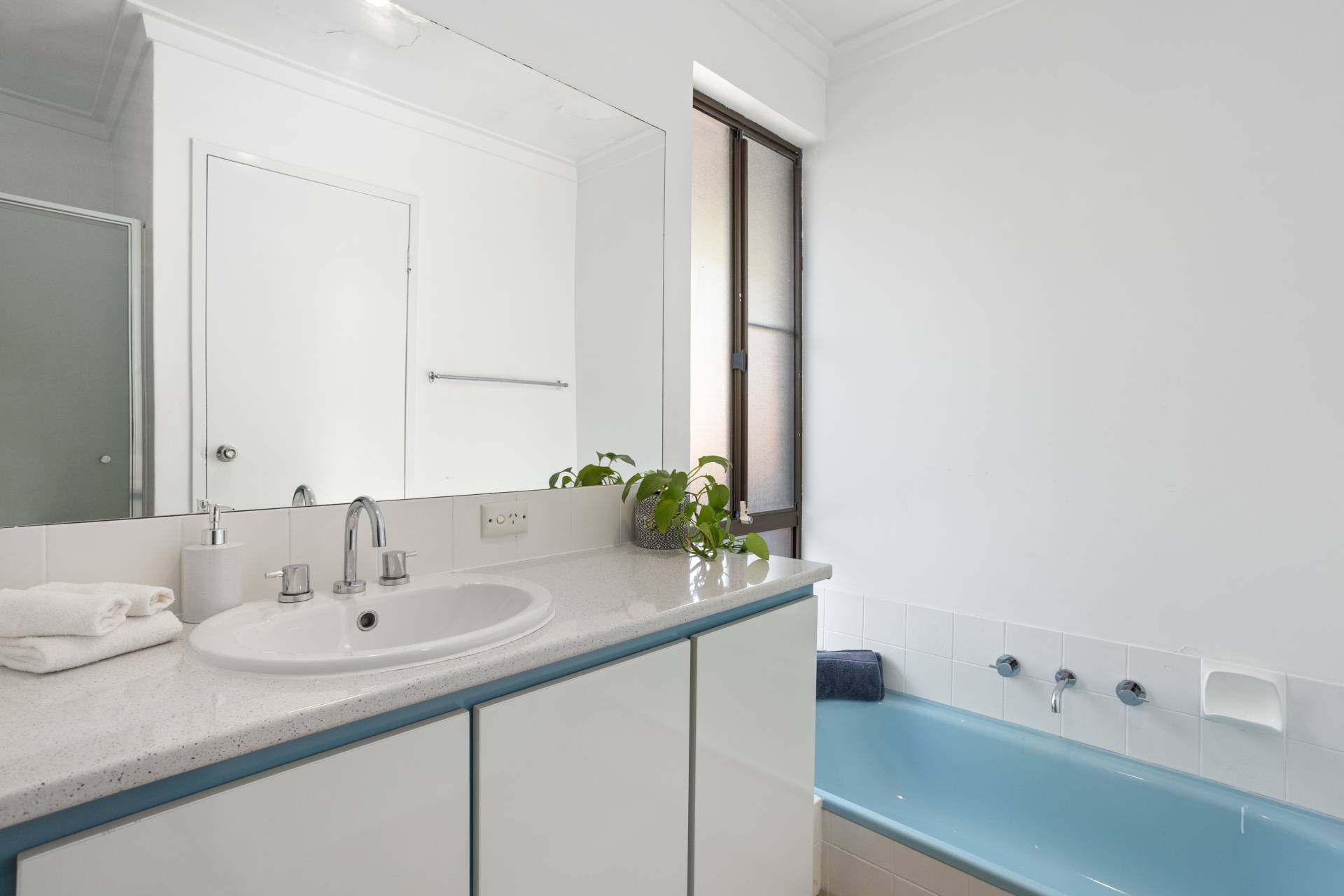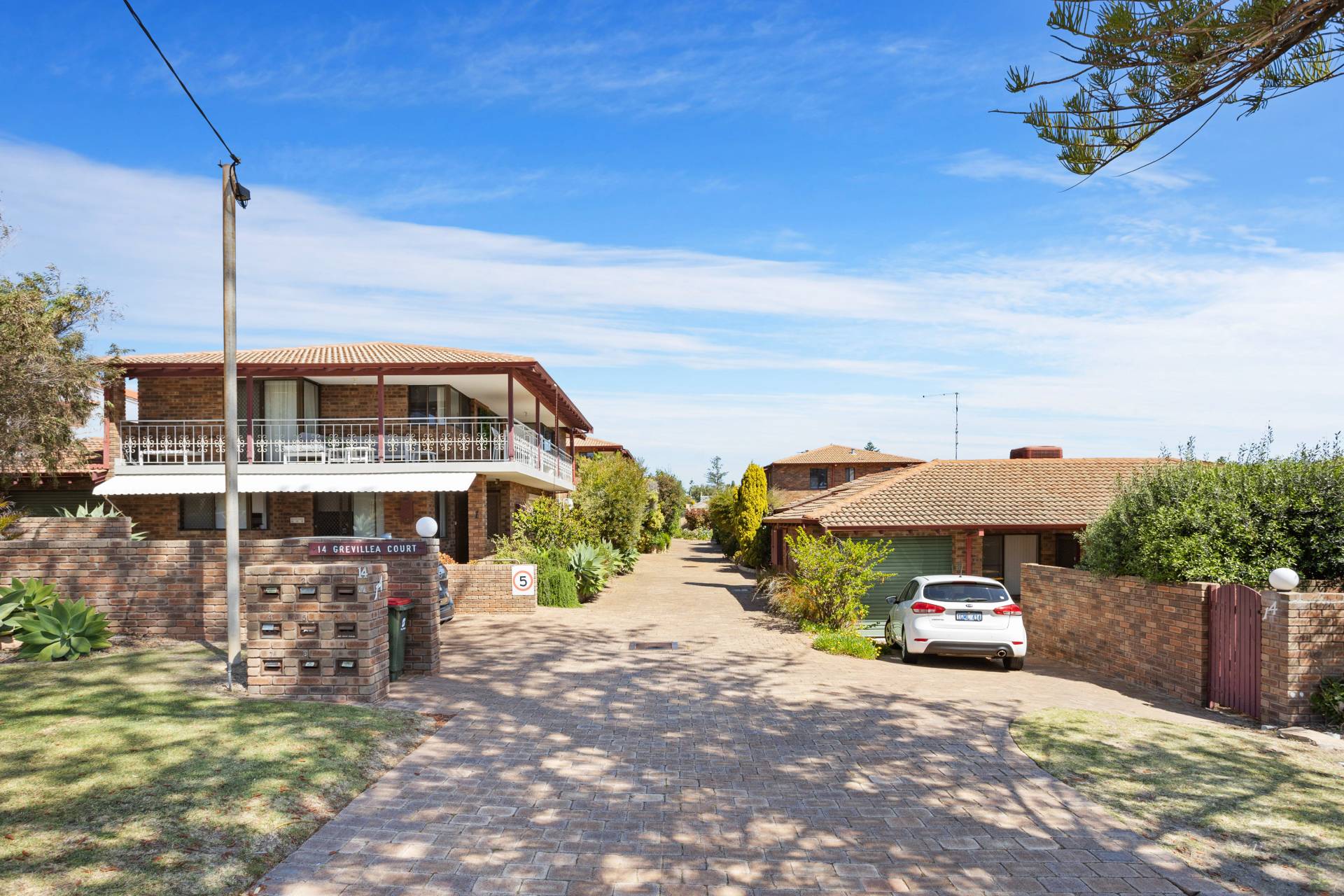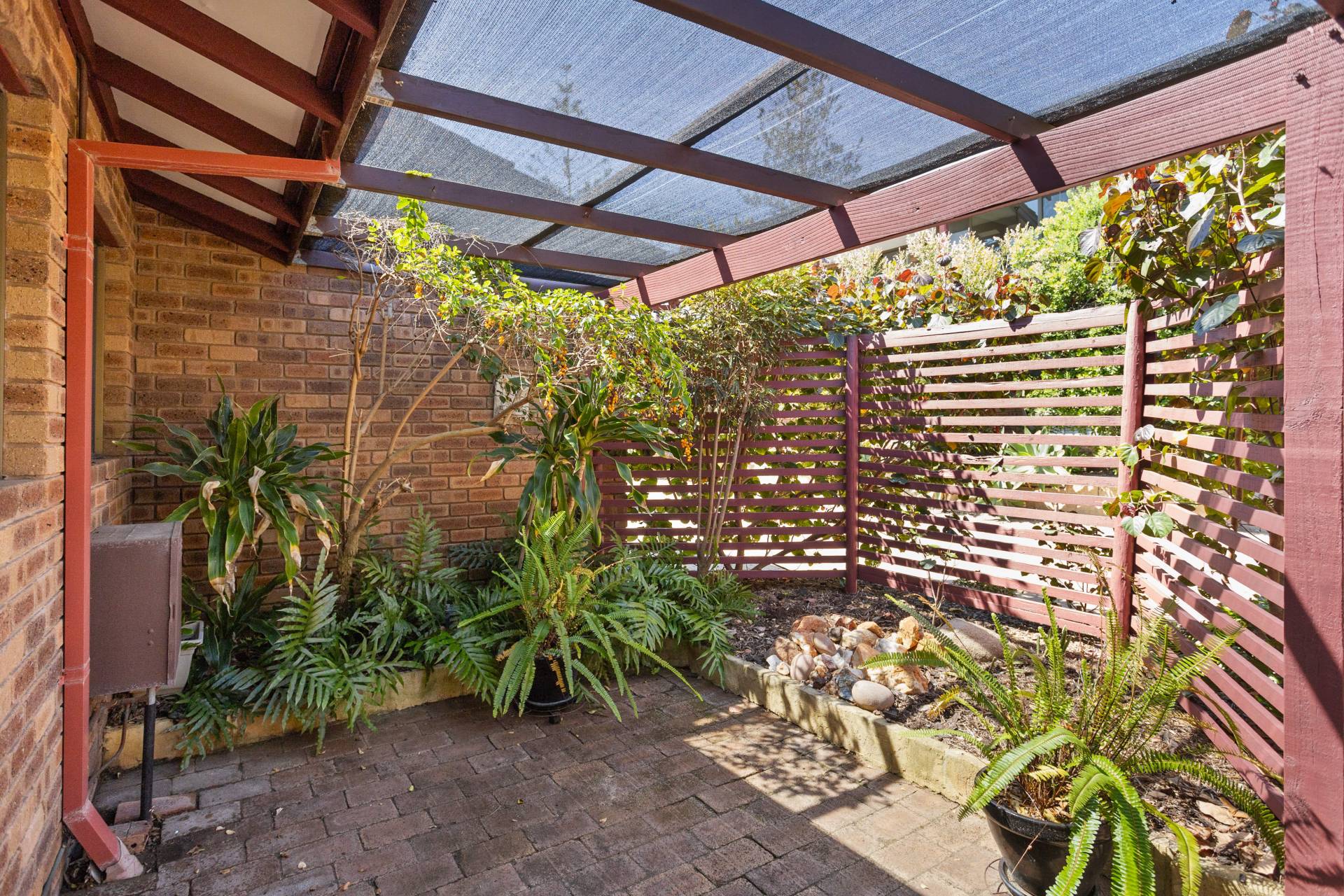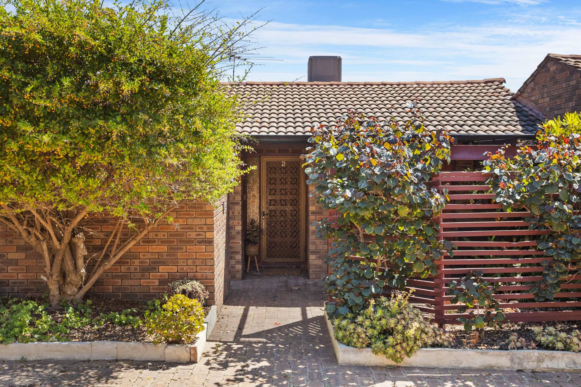 When it comes to relaxation and entertaining, the spacious backyard emerges as the villa's tranquil haven. Bordered by easy-care garden beds, the eye is immediately drawn to the stunning frangipani trees. Underneath the generous steel pergola, imagine sun-drenched mornings or balmy evenings spent with family or a book in hand.