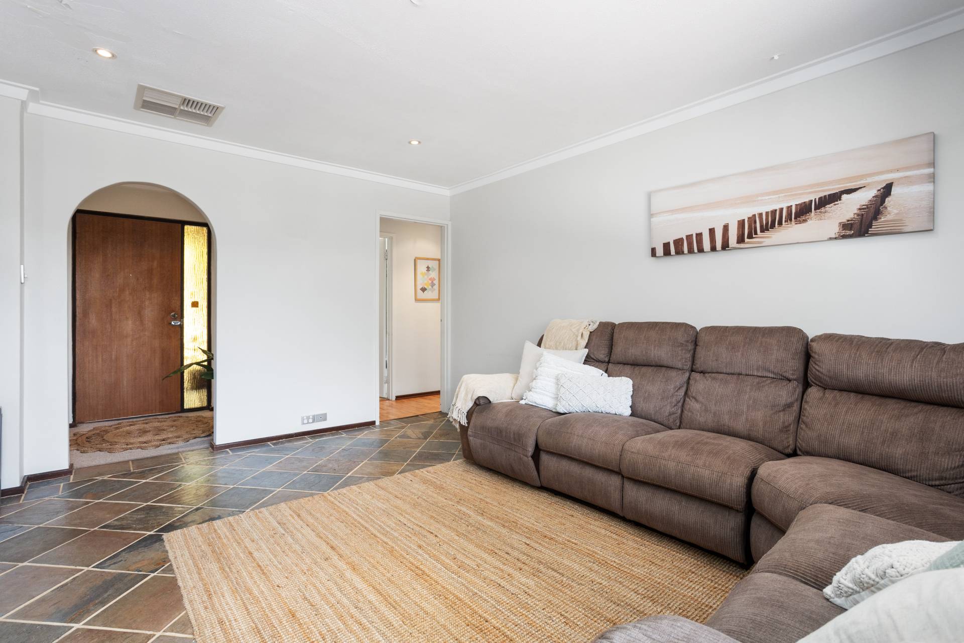 • Slate tiles and laminate timber flooring
