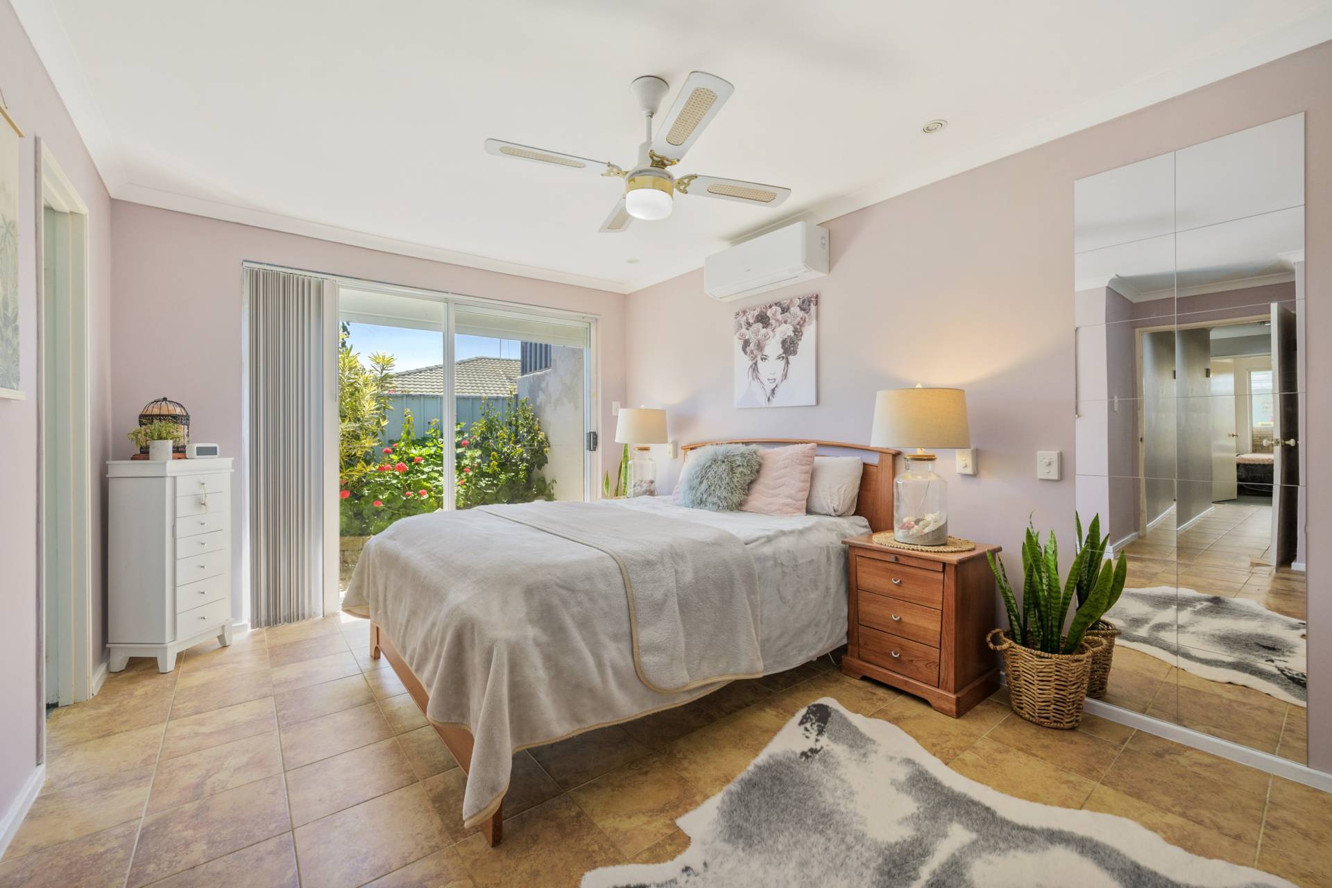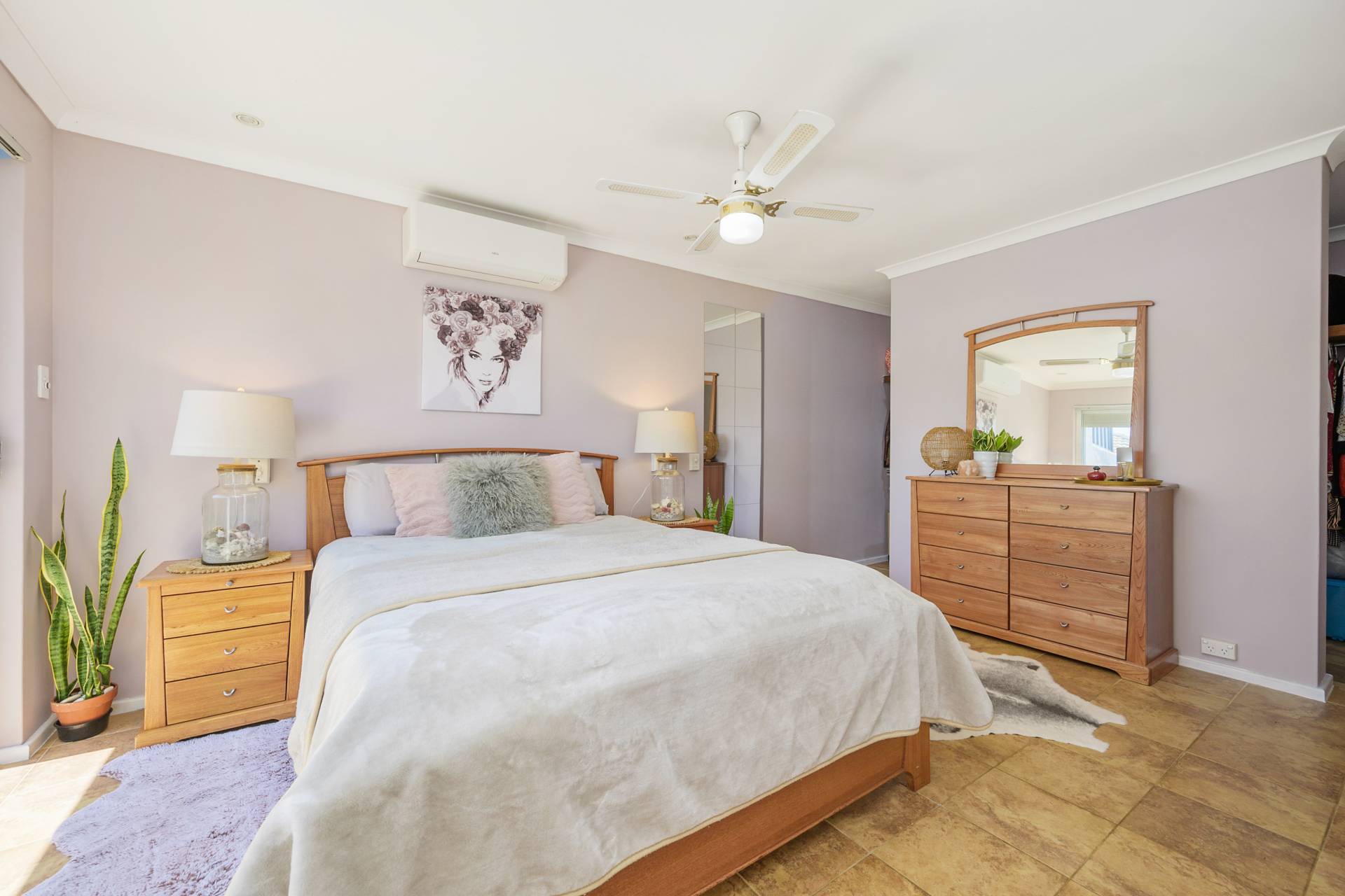 The pick of the sleeping quarters is a spacious master-bedroom suite with charming tiled flooring under foot, a ceiling fan above head, split-system air-conditioning for climate control, a walk-in wardrobe, access out to the side garden and a large ensuite bathroom with a shower, vanity and separate toilet. Servicing the other bedrooms and brilliant in its simplicity is a practical main family bathroom with a separate shower and bathtub.