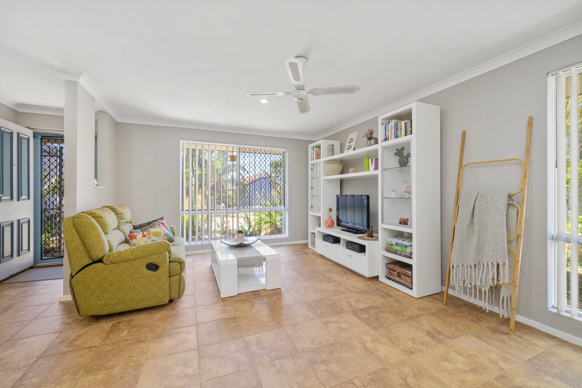 Doubling personal living options is a welcoming front lounge room that invites you inside immediately and has a ceiling fan to help circulate the fresh air and those sensual sea breezes filtering across from the coast.