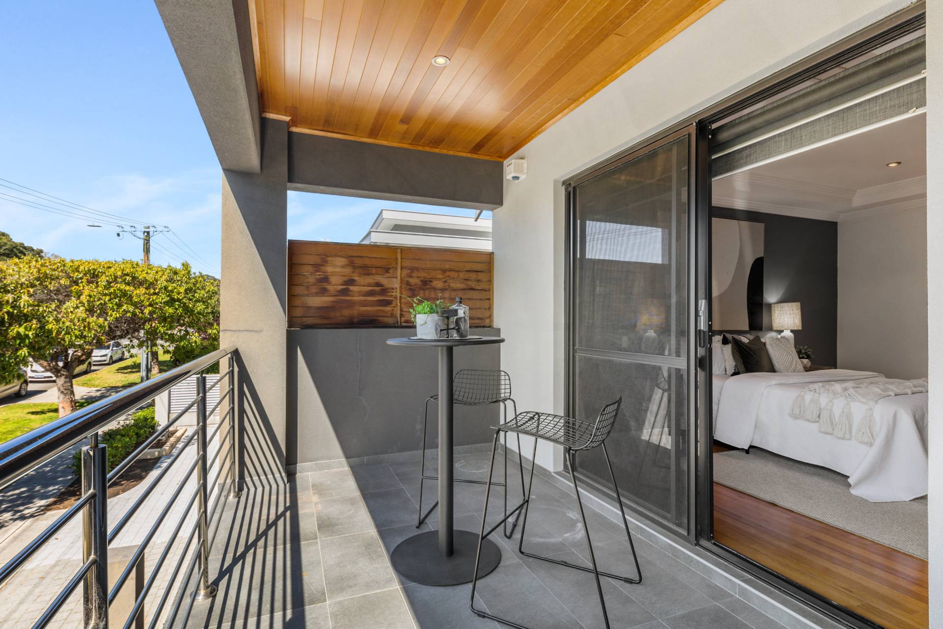 Upstairs you will find a spacious second living area featuring a convenient kitchenette and stunning timber flooring. Two additional double bedrooms and well appointment bathroom is also situated upstairs. The master bedroom boasts a generously sized walk-in robe, ensuite, beautiful timber floors, and your very own private balcony with feature cedar ceiling and quality light fixtures – a personal sanctuary for those quiet moments.