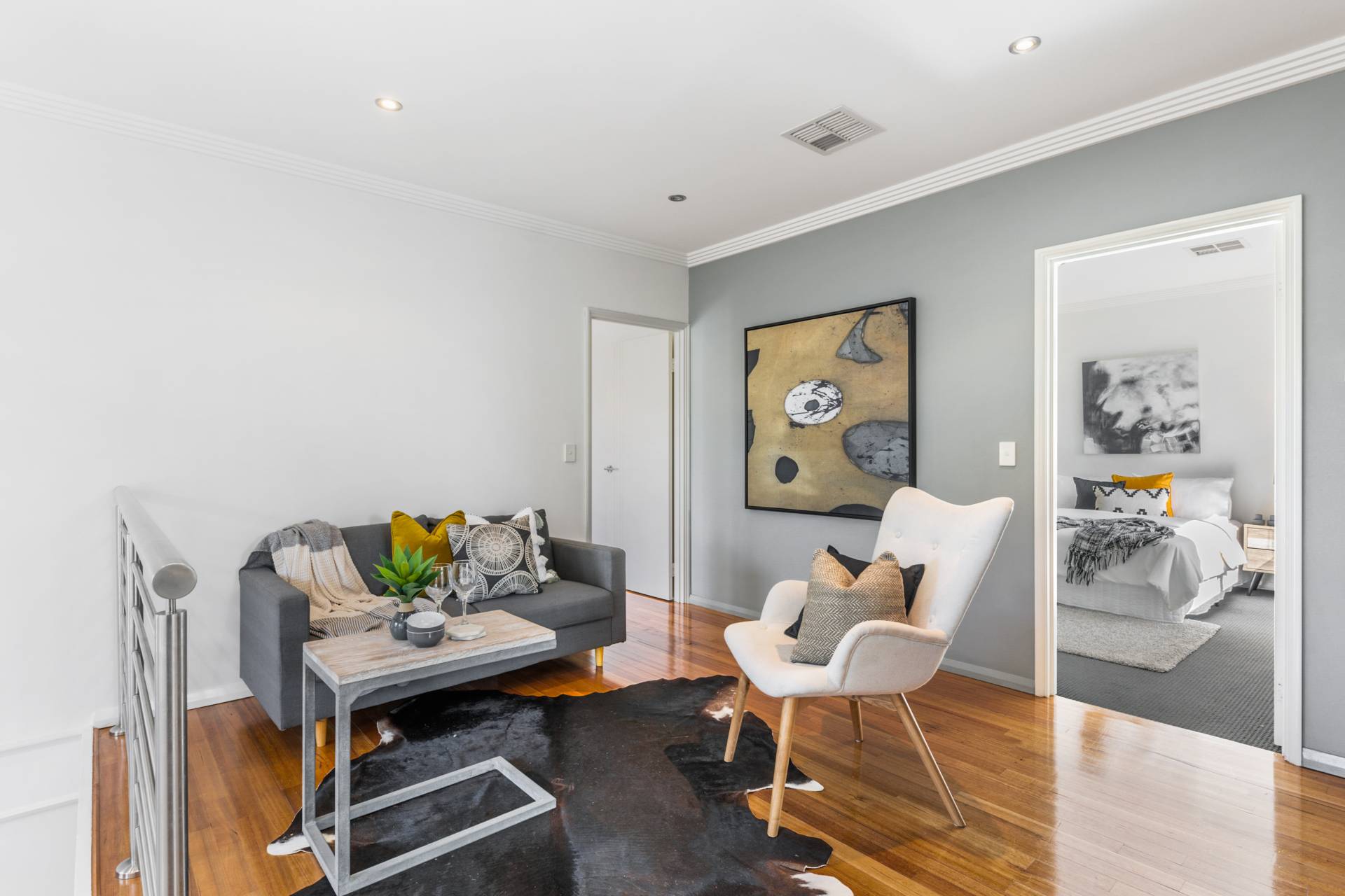 Additional features include a separate powder room downstairs, versatile study that can easily become a fourth bedroom, spacious laundry with its own drying courtyard, easy care gardens and split system reverse cycle air-conditioning.