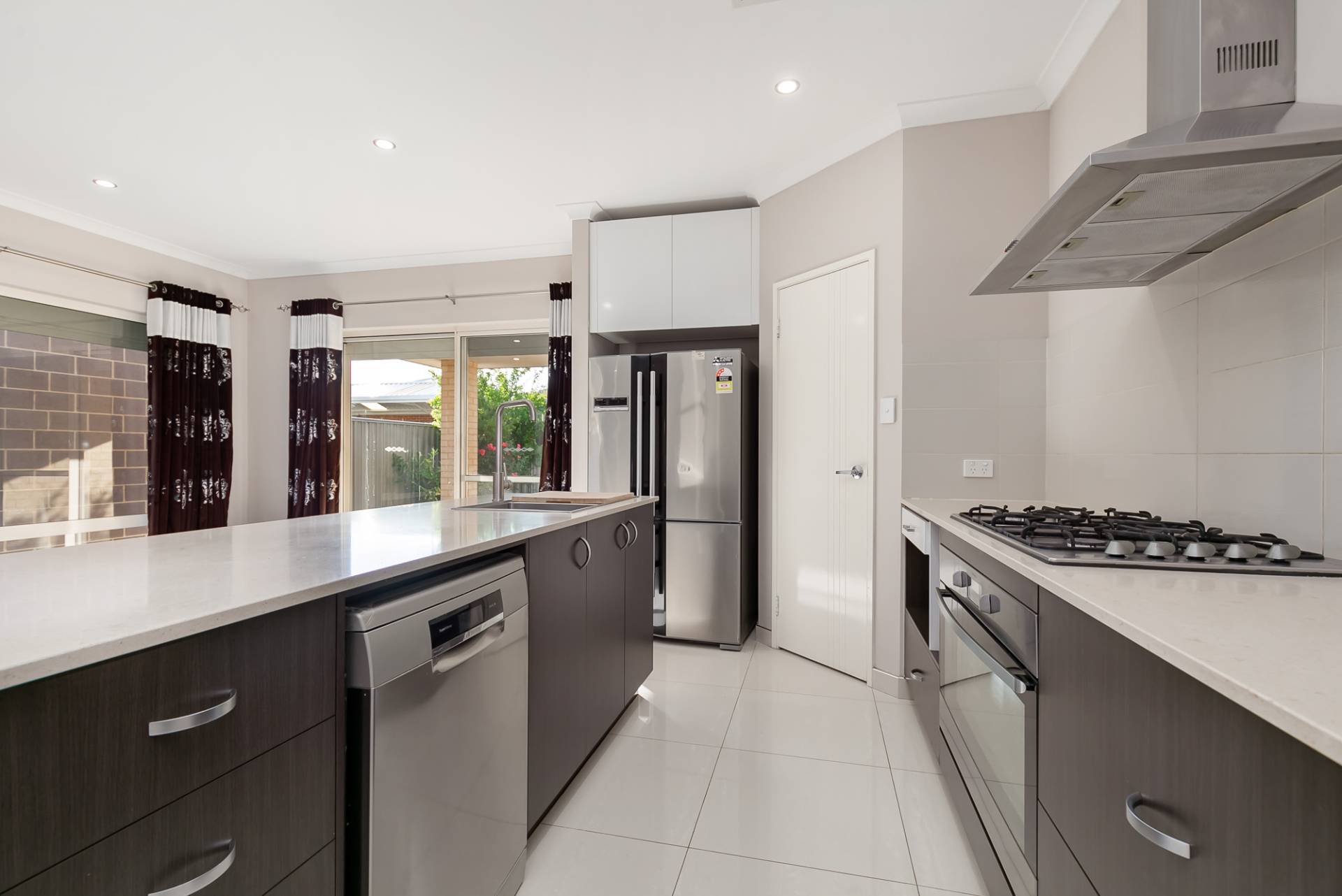 The main space of the home is the open living with lounge, dining and kitchen including oven, gas stove, range hood, double sink, built in pantry and dishwahser. Flowing the entertainment to the low maintenance backyard with pavements and artificial lawn. This creates a great indoor-outdoor living to open up in great weather for family and friends to enjoy.