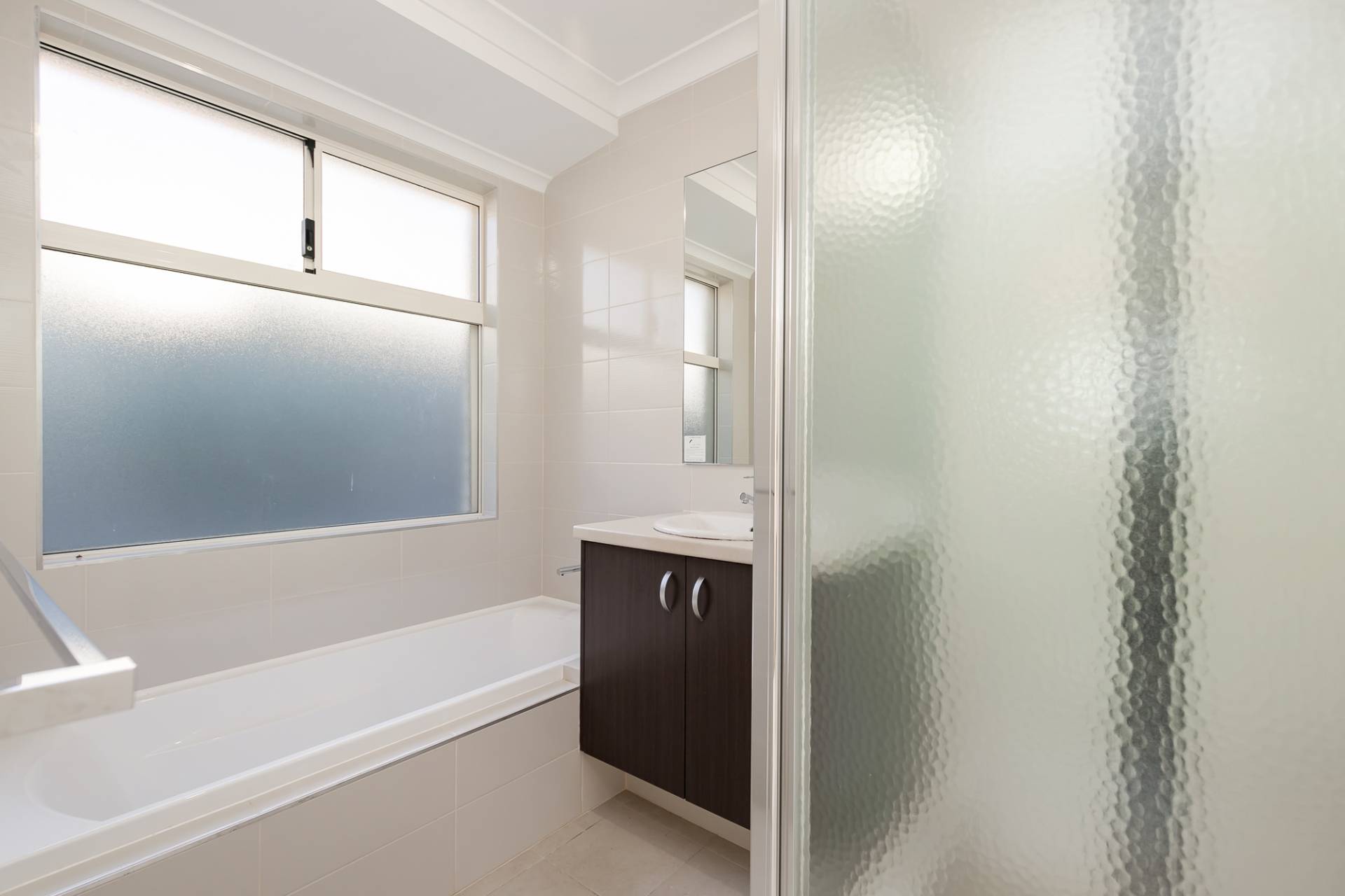 The master is also carpeted with a walk-in robe and ensuite with necessities of shower, toilet, and single vanity with mirror. 2 minor bedrooms both are carpeted with double robes, perfect for the little ones or guests.  The main bathroom encompasses a separate toilet, built in bath, shower and single vanity.