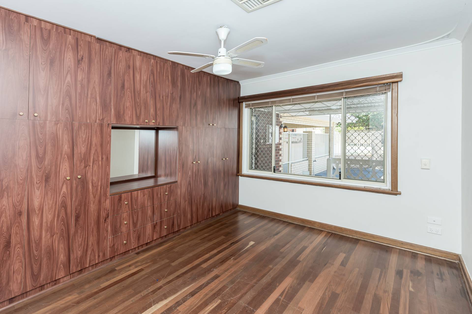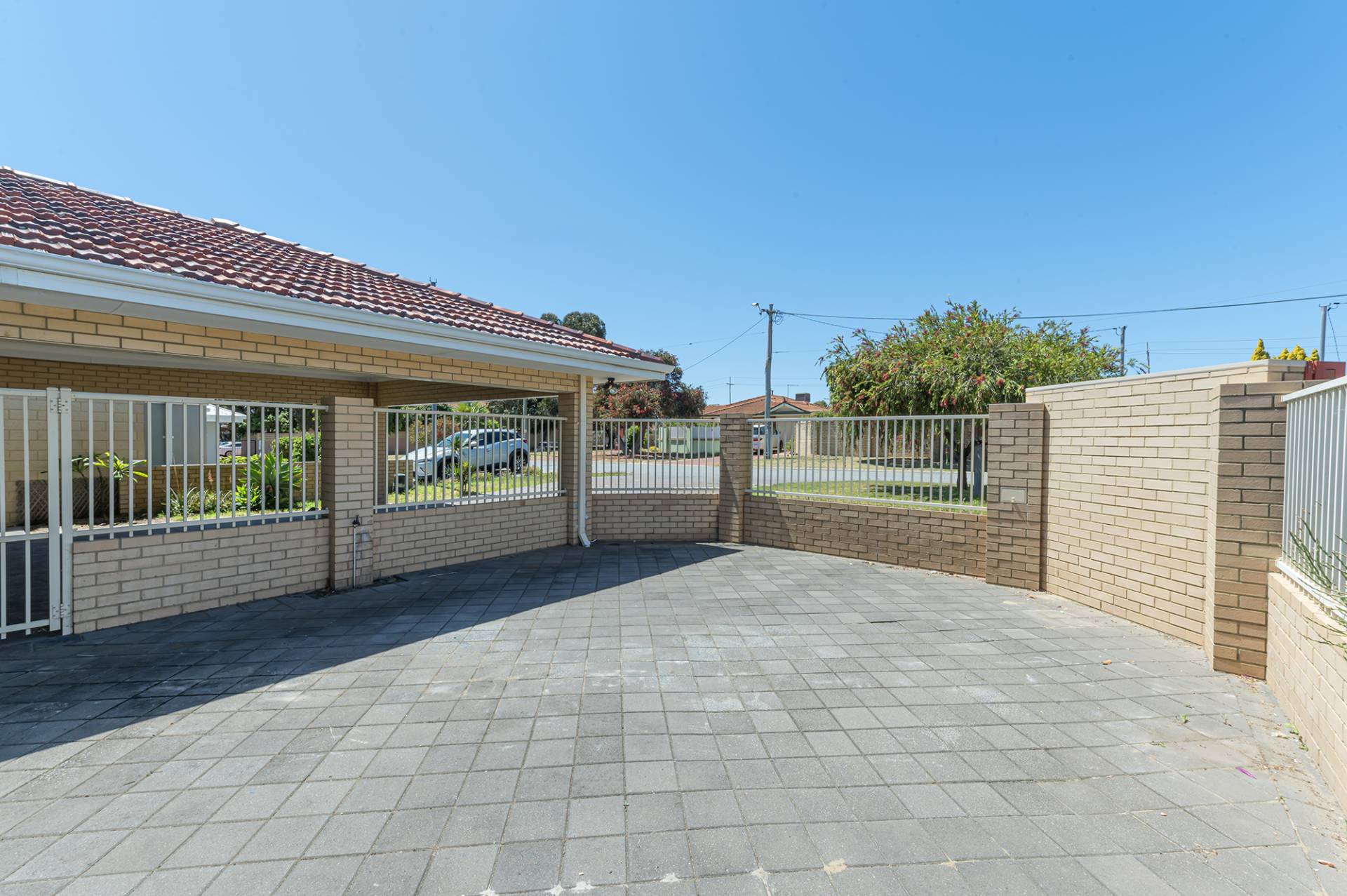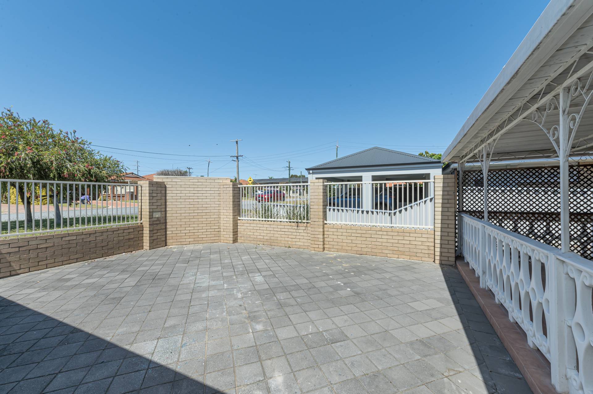 Fully secure, the front of the home features a spacious paved patio, a fantastic feature that sets it apart from the average residence. This would serve the kids well, easily big enough for a trampoline and swing set with secure fencing all around, or equally, it would look incredible filled with plants and outdoor furniture. Alternatively, put down some lawn or create your own dream landscaping from a blank canvas. The expansive, undercover front veranda overlooks this area and is easily large enough to accommodate outdoor dining furniture, should you like to perch and watch the world go by.