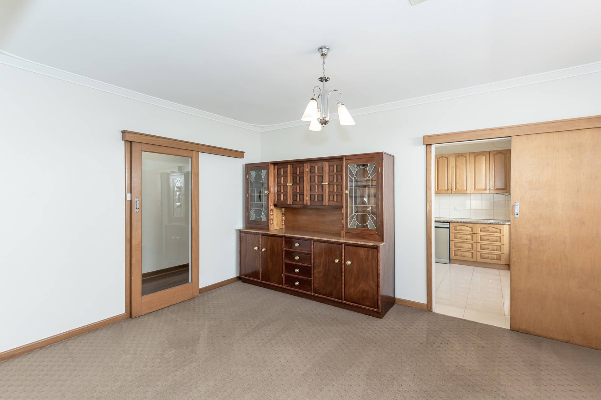 Dining room with an antique storage cabinet