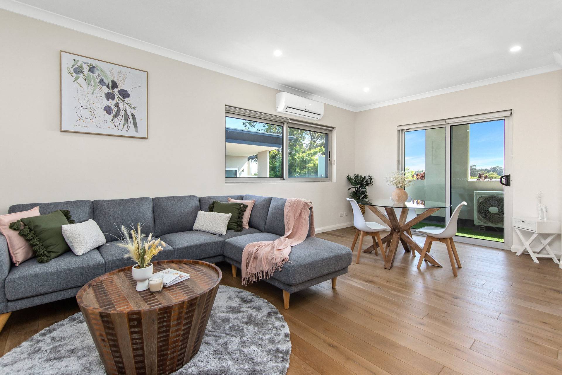 Admire the tree-top surrounds from the open plan living, dining and kitchen, complete with smart timber flooring, recessed lighting and contemporary pendants, sliding glass doors leading out to a private terrace and a bright, airy ambience.