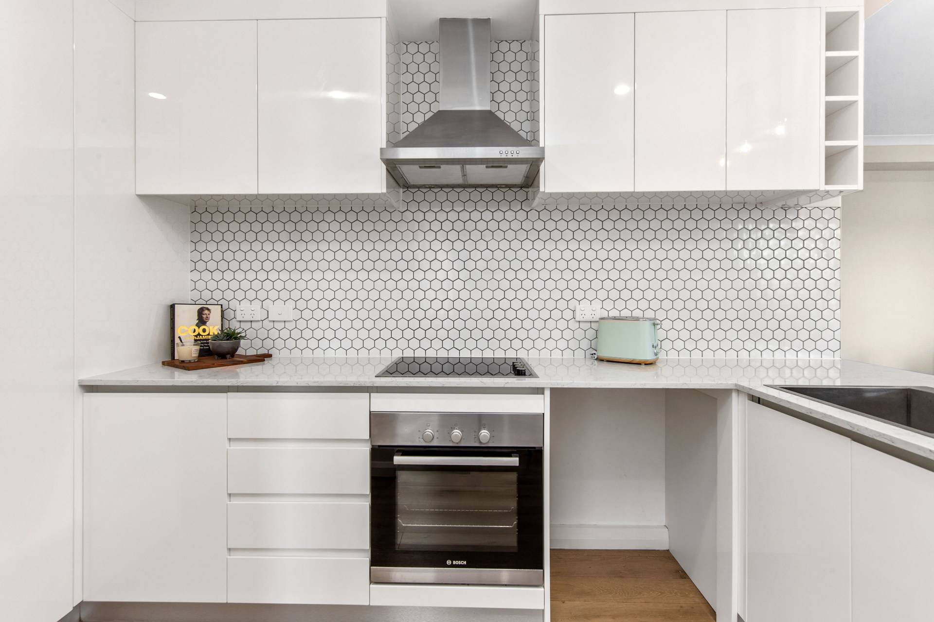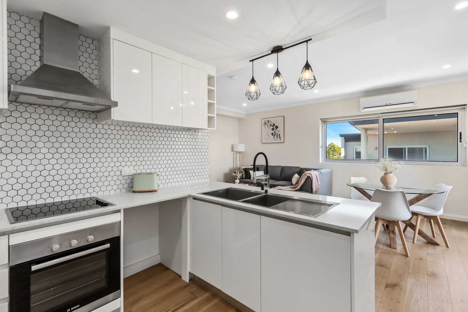 Both carpeted bedrooms enjoy split system air conditioning, mirrored built-in robes and an ensuite bathroom, both with vanity, frameless rain showers and WC, while a good-sized separate laundry with storage exemplifies the wise use of space within this home. The kitchen is a stand-out, beautifully renovated with double sinks, an electric Bosch 600mm oven and ceramic cooktop, Vedastone engineered quartz benchtops, an eye-catching tiled splashback, top and bottom cabinetry, and a breakfast bar. Adjoining is the sunny living and dining, kept cool all summer with split-system air conditioning.