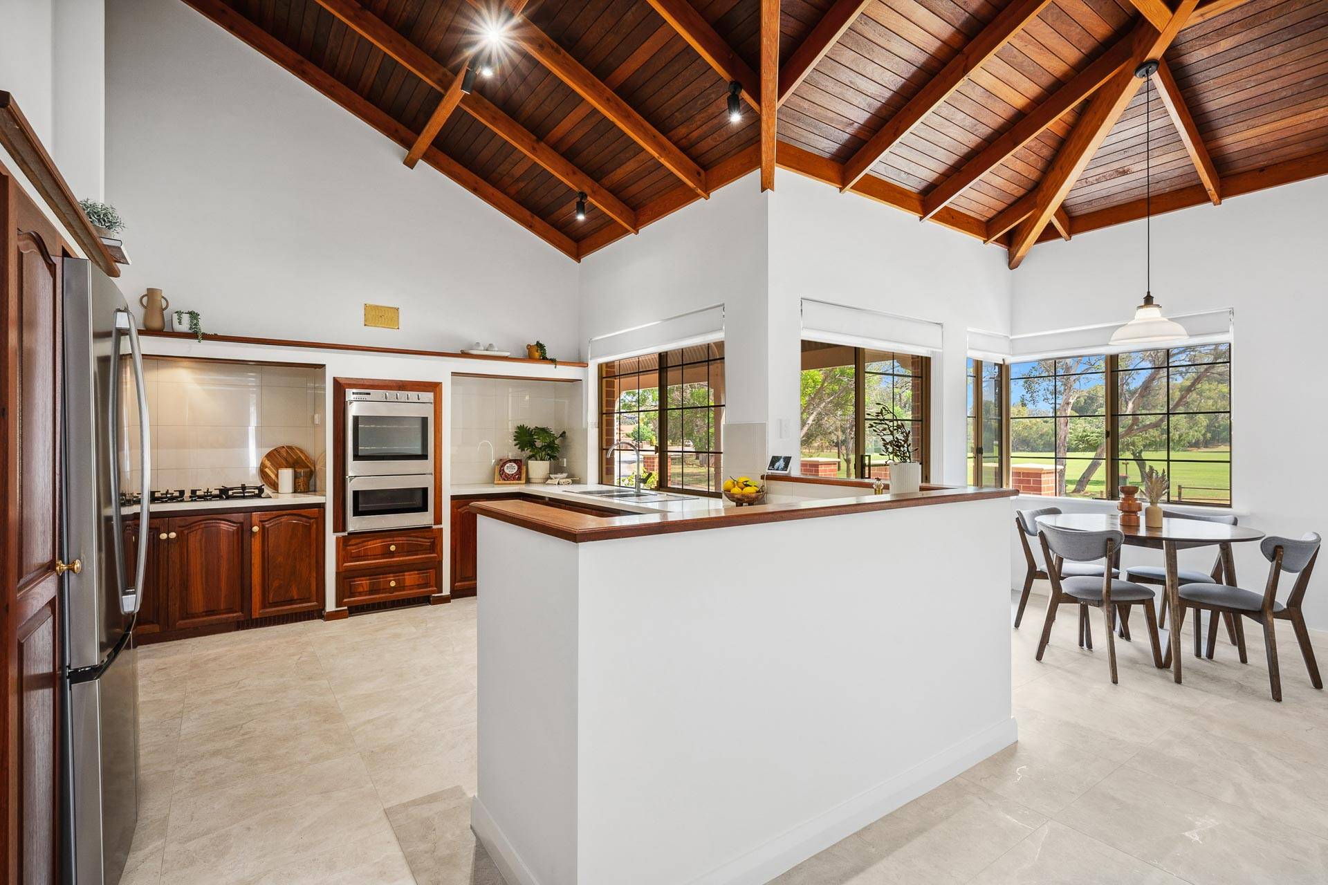 Step through to the warm and inviting chefs kitchen, complete with high vaulted ceilings, stainless steel appliances, beautiful jarrah cupboards, and an incredible outlook of the stunning parklands, and offering access to your beautiful front garden. Not only is this kitchen the perfect companion to your next culinary masterpiece but it is also a fantastic place to enjoy the view your incredibly well appointed home offers.