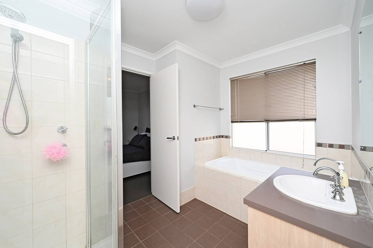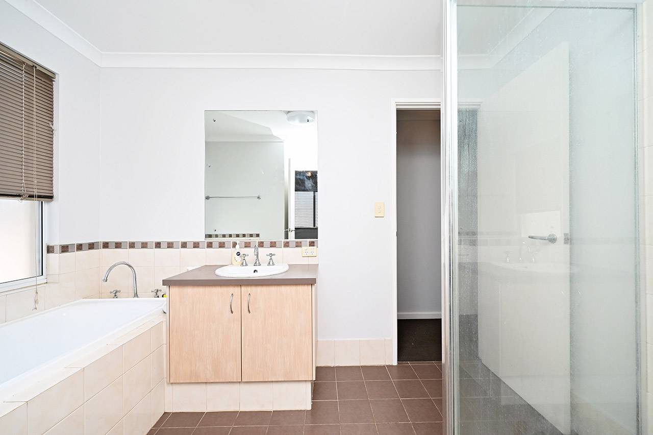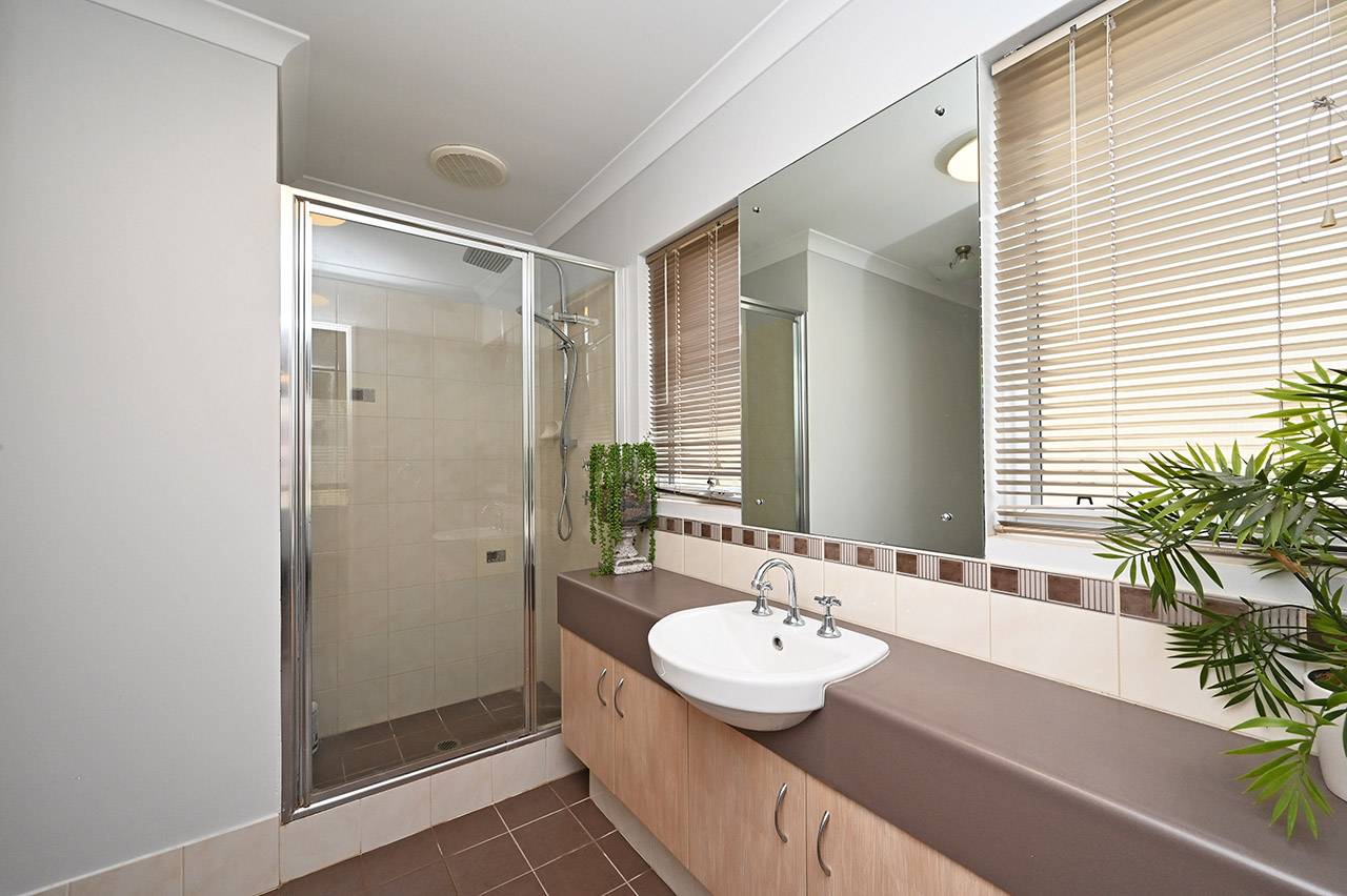 Modern ensuite with extra length bench/cupboards, shower (with screen) and separate WC