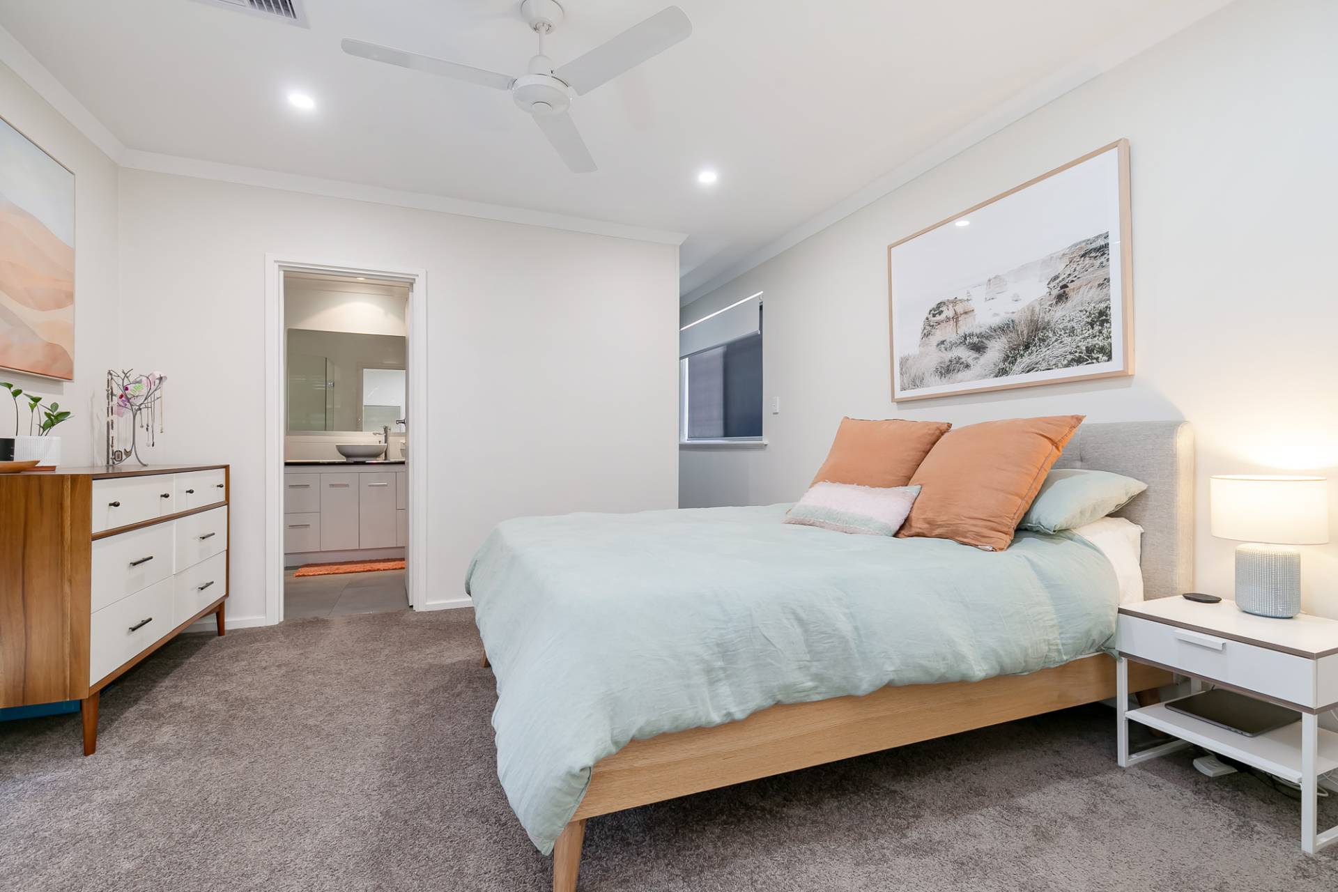 Master bedroom walk-in robe and private ensuite with shower, vanity and toilet