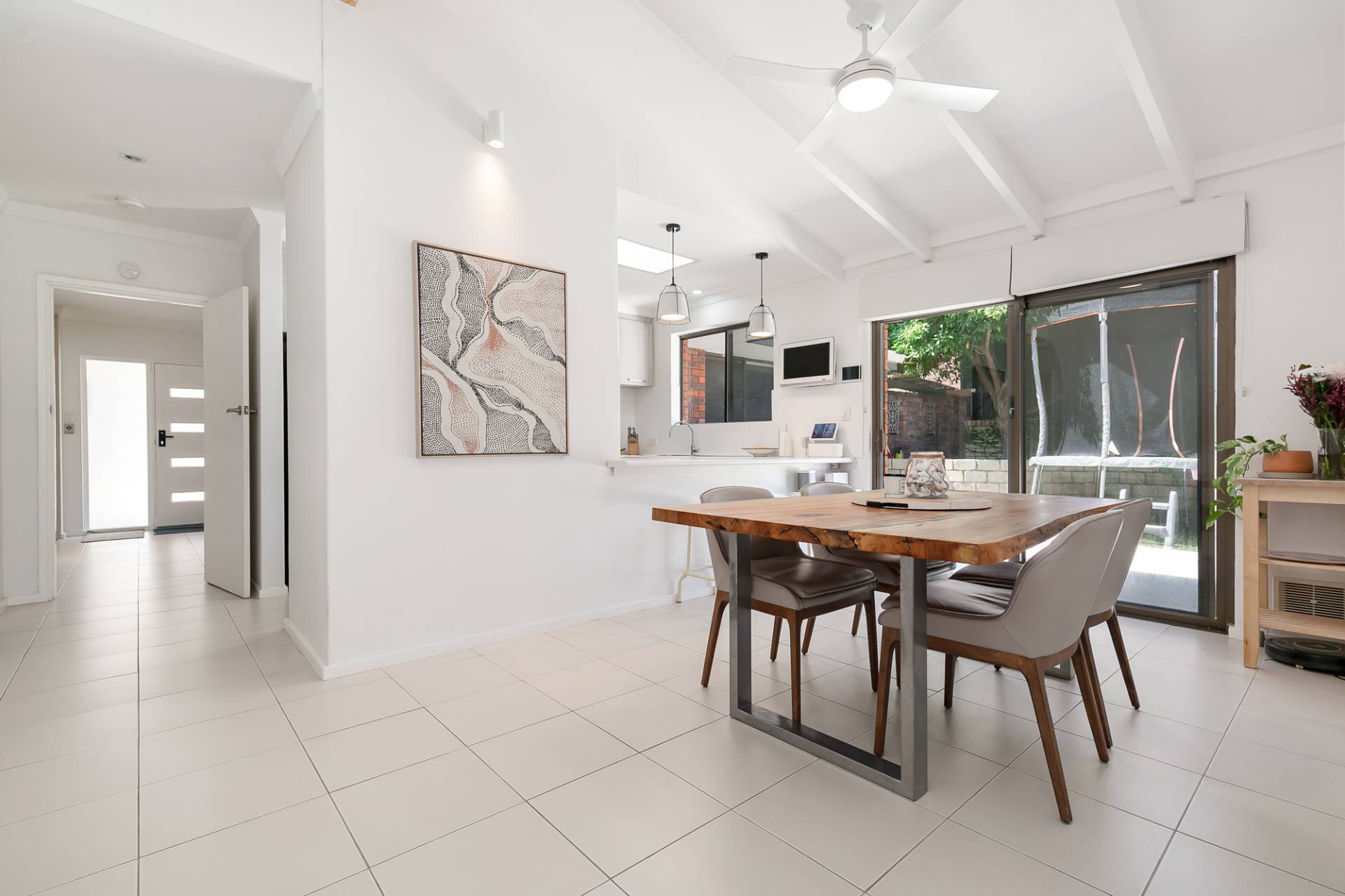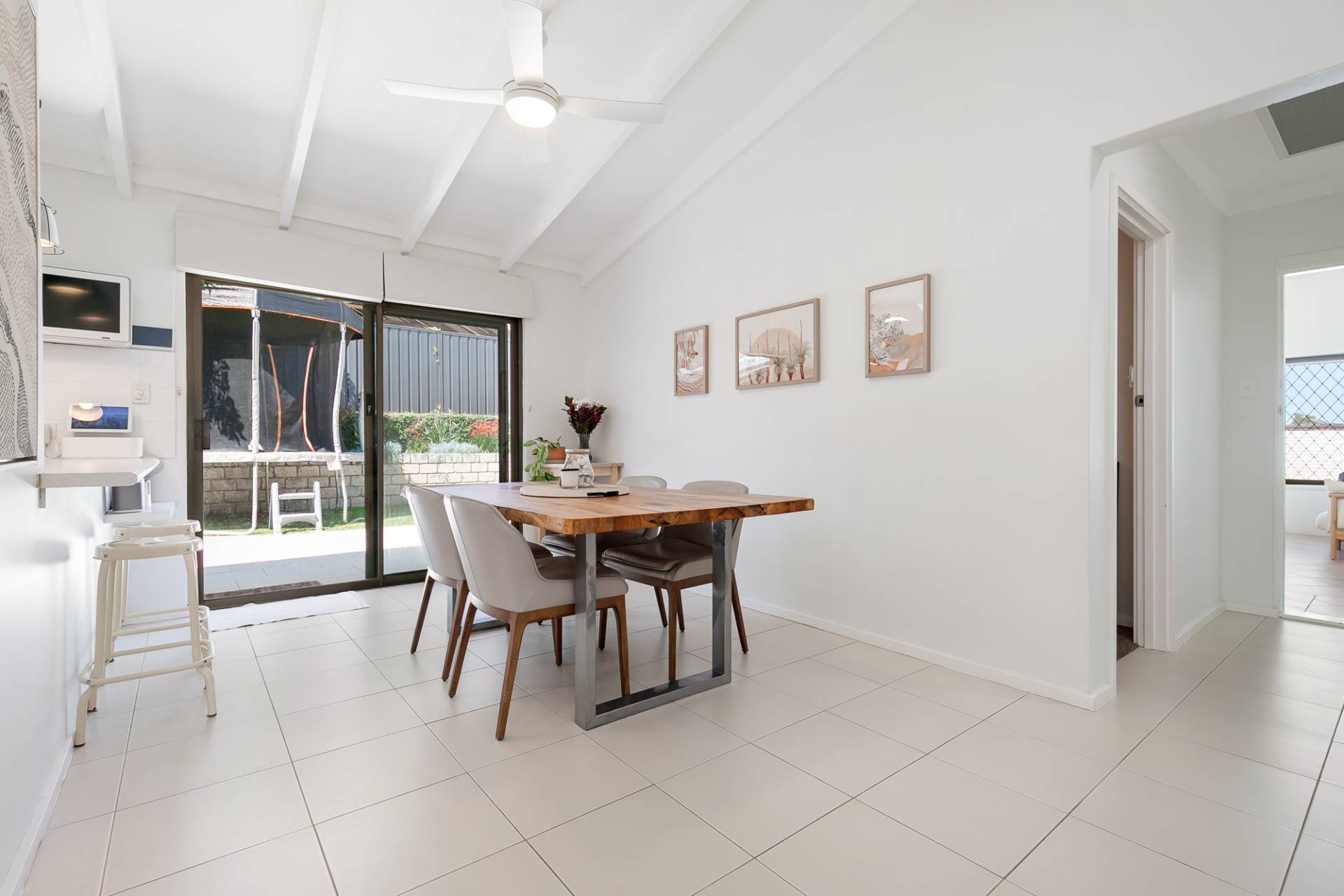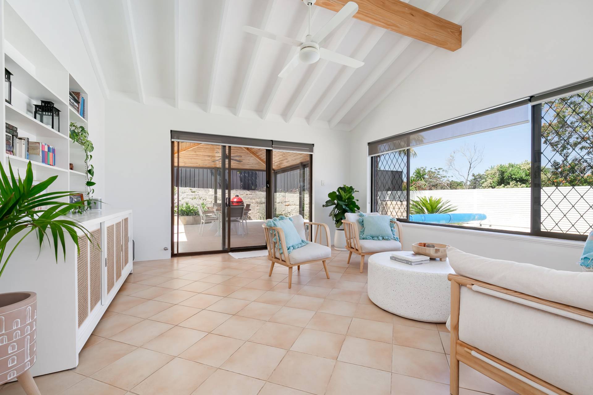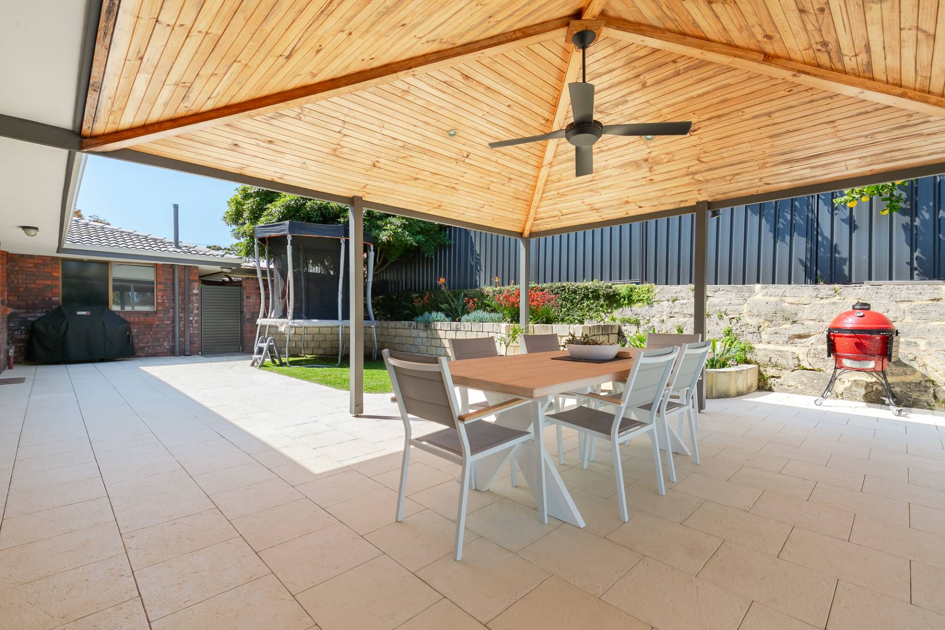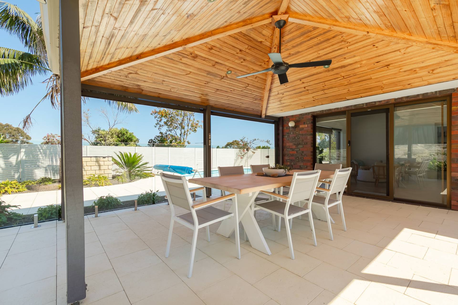 High pitched entertaining area with ceiling fan