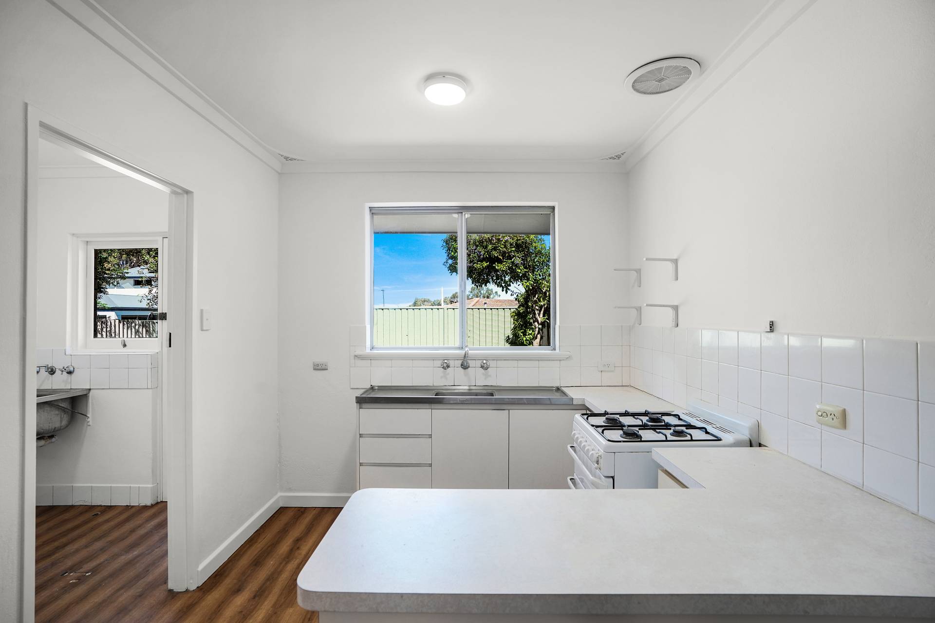 - Practical kitchen that overlooks the back yard comes with a decent amount of bench space, free-standing gas cook top/oven and space for a microwave