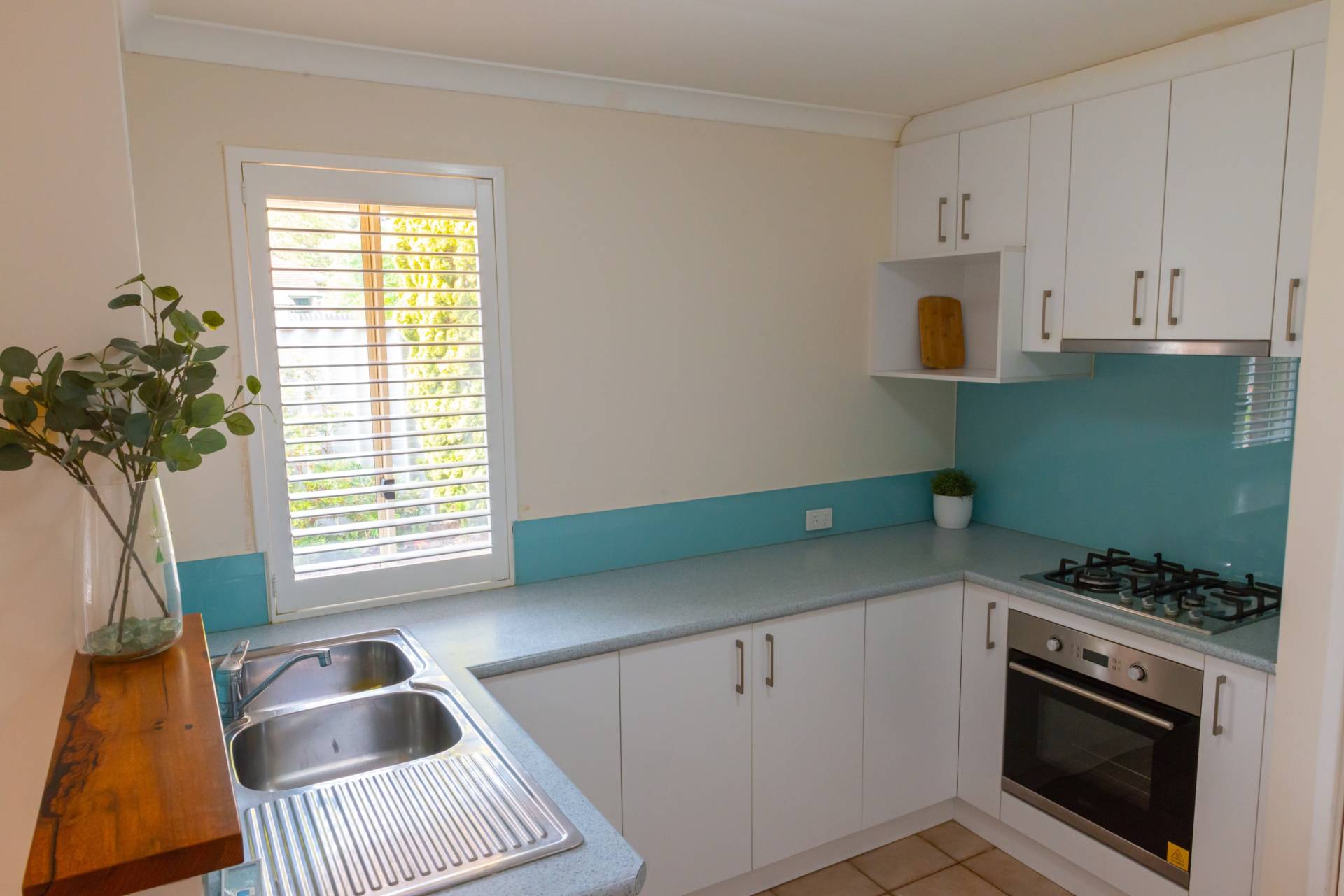 • Modern kitchen with gas cooktop & pantry