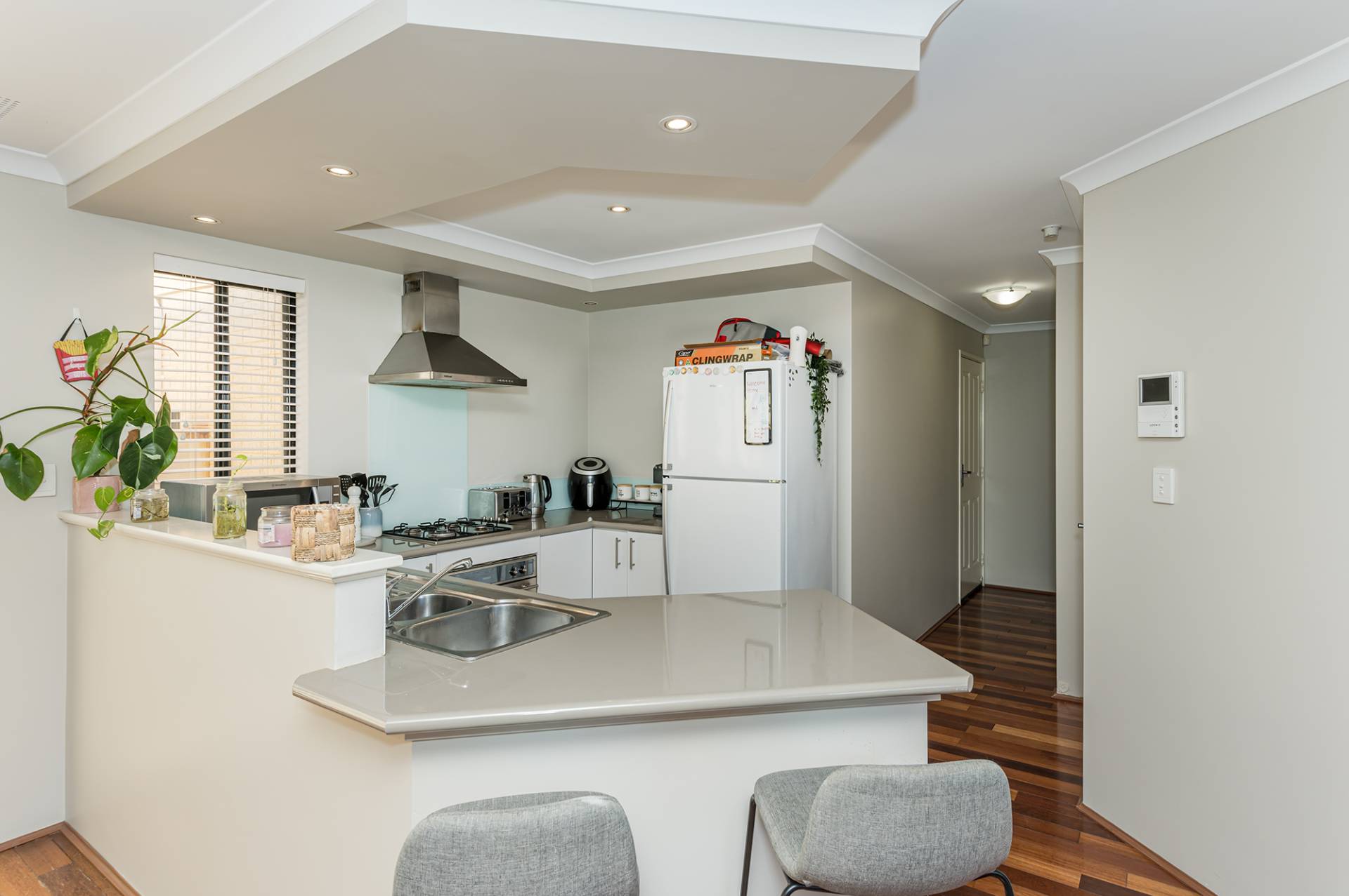 The generous open-plan living and dining area is light and bright, with gorgeous timber flooring, reverse-cycle air conditioning for comfort throughout the seasons, and a recessed ceiling that adds spaciousness. In the stylish and functional kitchen, set beneath a bulkhead ceiling, you'll find stainless steel cooking appliances, including an electric oven and gas hob - everything a keen home chef needs for entertaining family and friends.