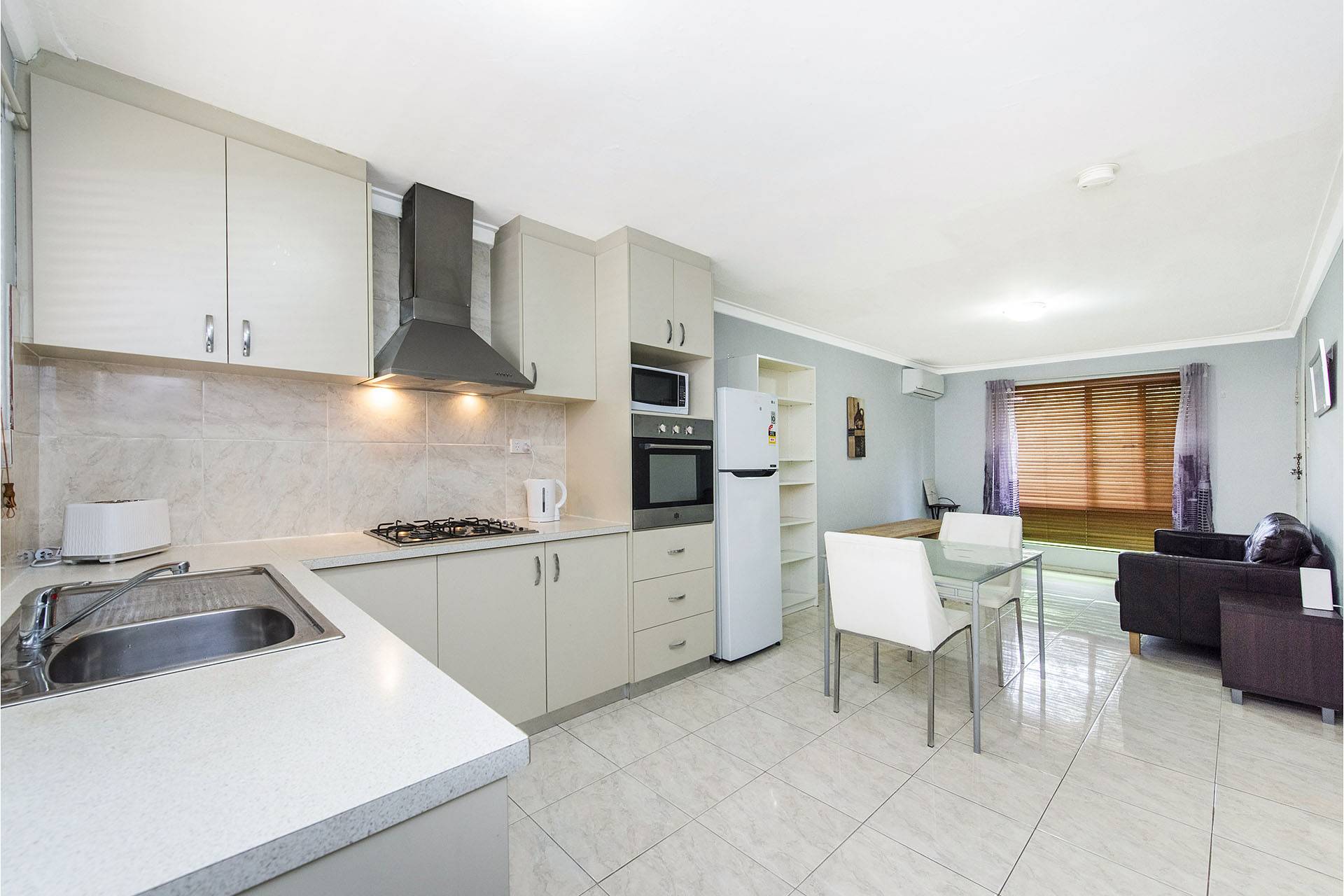 It features glistening easy care tile flooring and offers very spacious open plan lounge/living/dining, modern kitchen with plenty of bench and cupboard space, large master bedroom, bathroom/laundry and balcony overlooking gardens.
