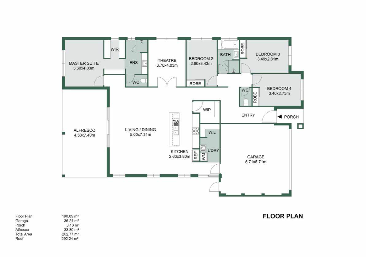 • Modern kitchen with 900ml oven, gas cooktop, dishwasher and a generous walk-in pantry