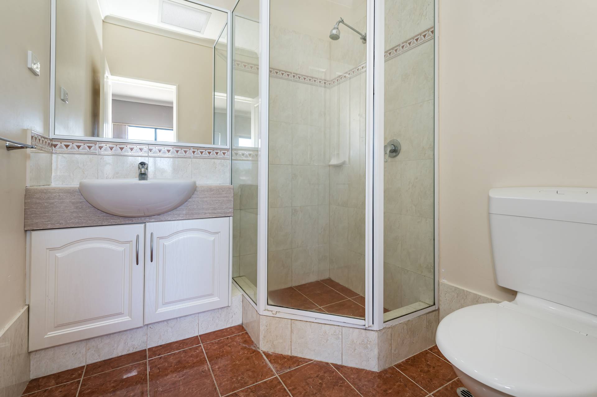 Upstairs, find a generous main bedroom with split-system air-conditioning, built-in robes and a front-facing balcony accessed via sliding glass doors, a great place to take in the peaceful surrounds. A private ensuite offers a shower, vanity, and WC, while a second family-sized bathroom enjoys a separate shower, bath, and WC. Built-in robes are in all three remaining bedrooms, and a split-system air conditioner is a feature in bedroom two.