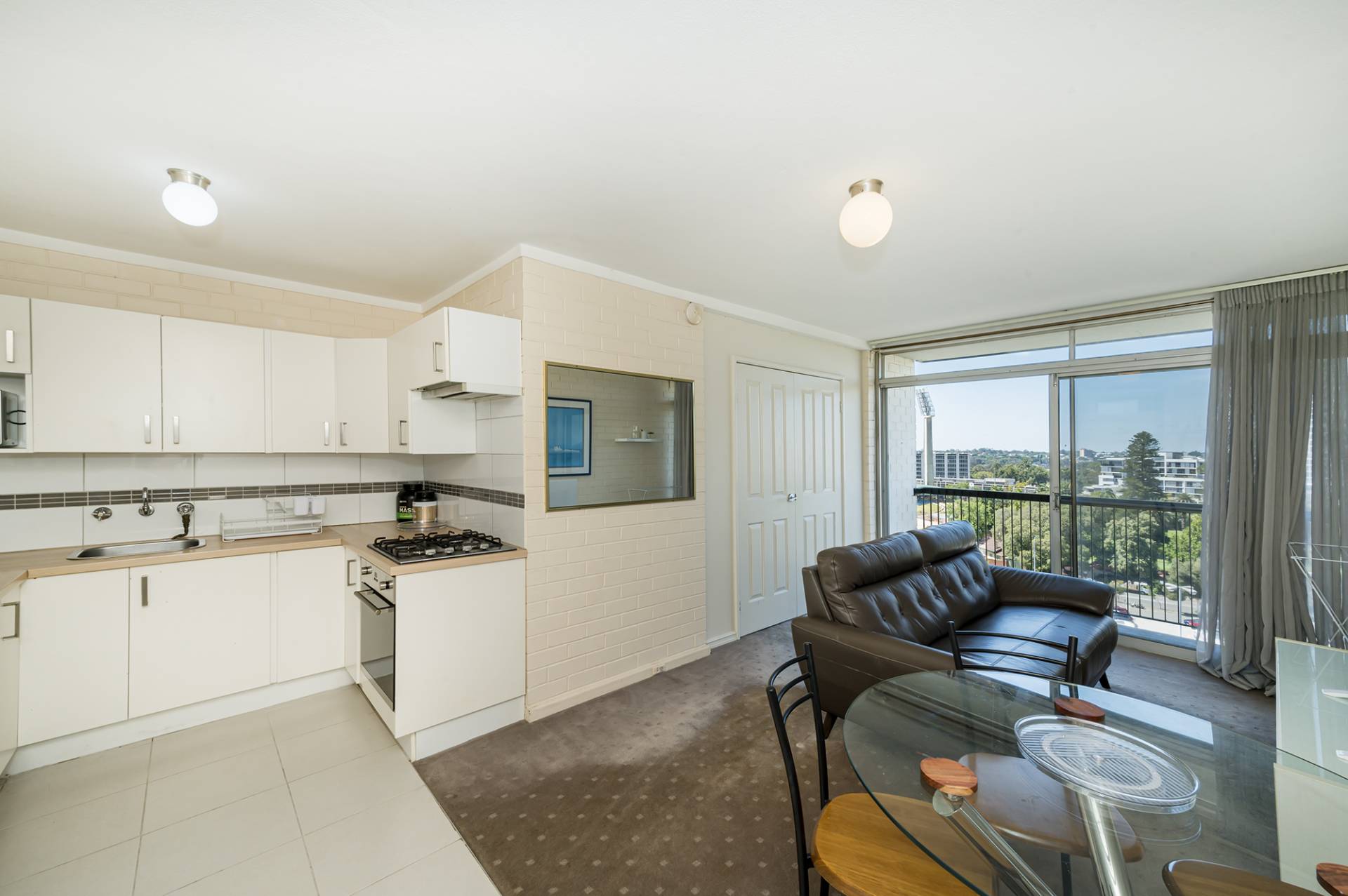 The apartment features an open-plan living area, a well-appointed kitchen with ample cupboard space, and a dining area. Adjacent is the generously sized bedroom with an attached bathroom and wardrobe. A brief stroll takes you to the Swan River for morning walks or sunset strolls, while Gloucester Park, WACA stadium, and Claisebrook Cove are nearby attractions. Act swiftly; this "Waterloo Heights" opportunity won't wait!