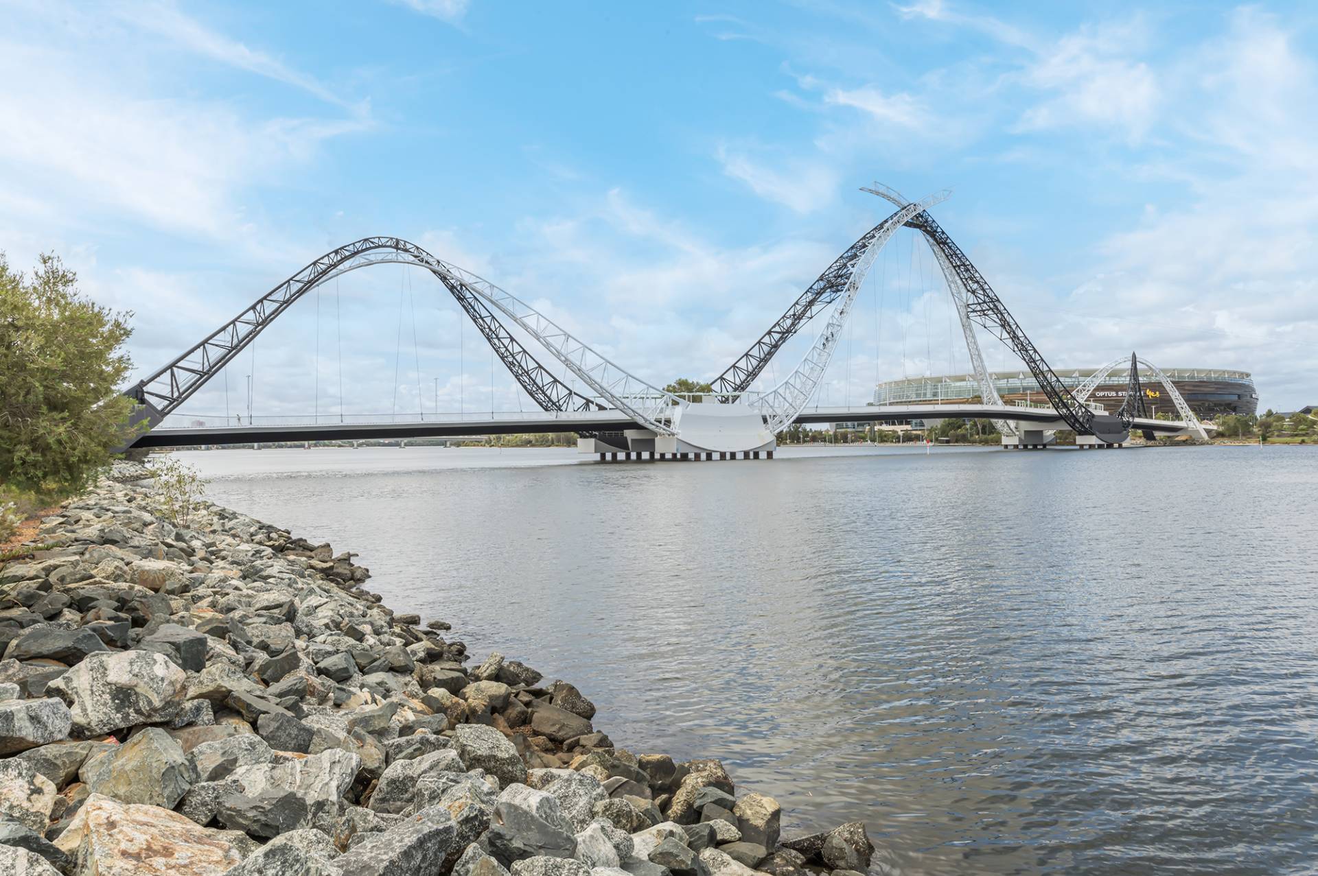 Optus Stadium via Matagarup Bridge - 1.3 km.