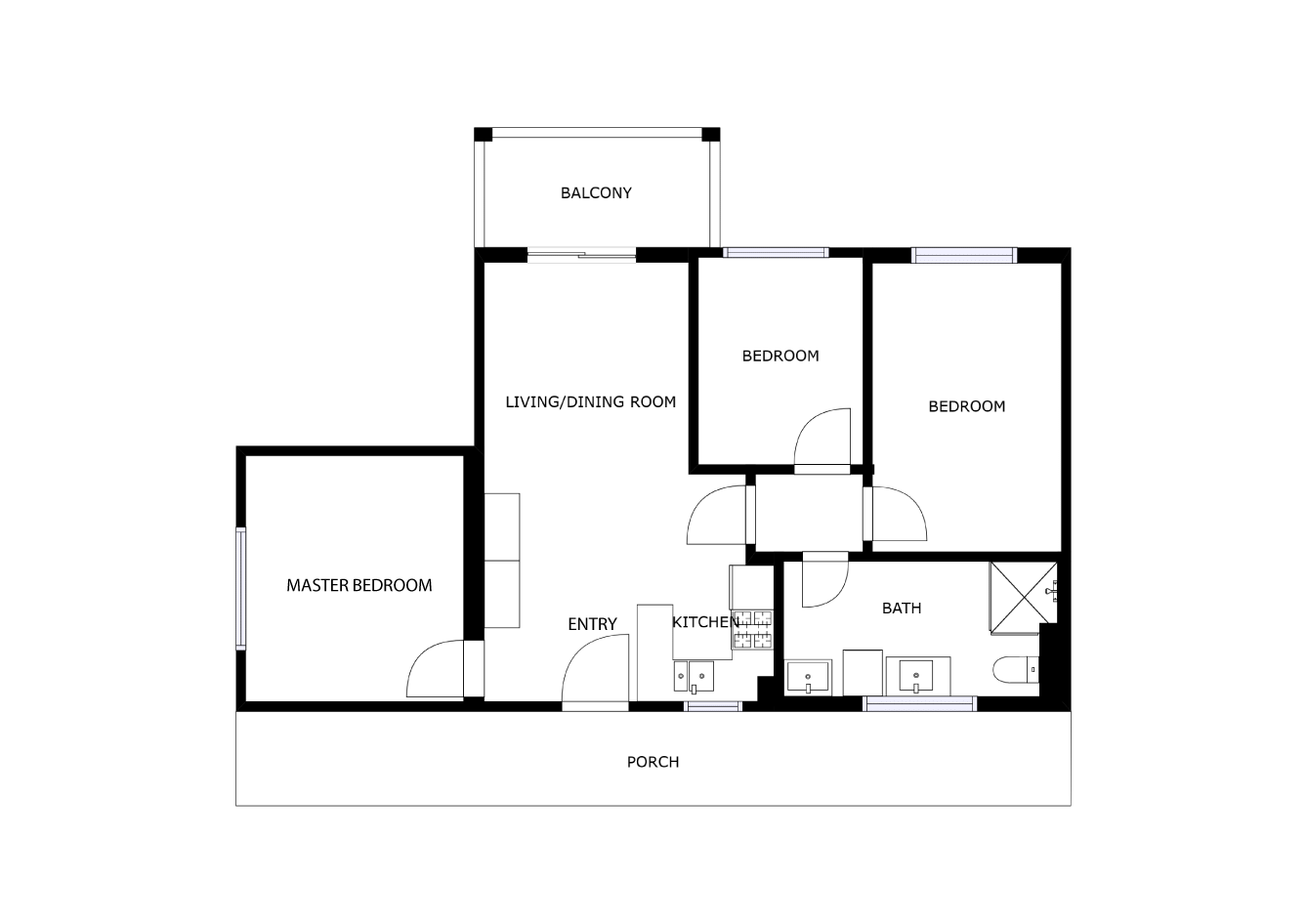 Three bedrooms, one bathroom