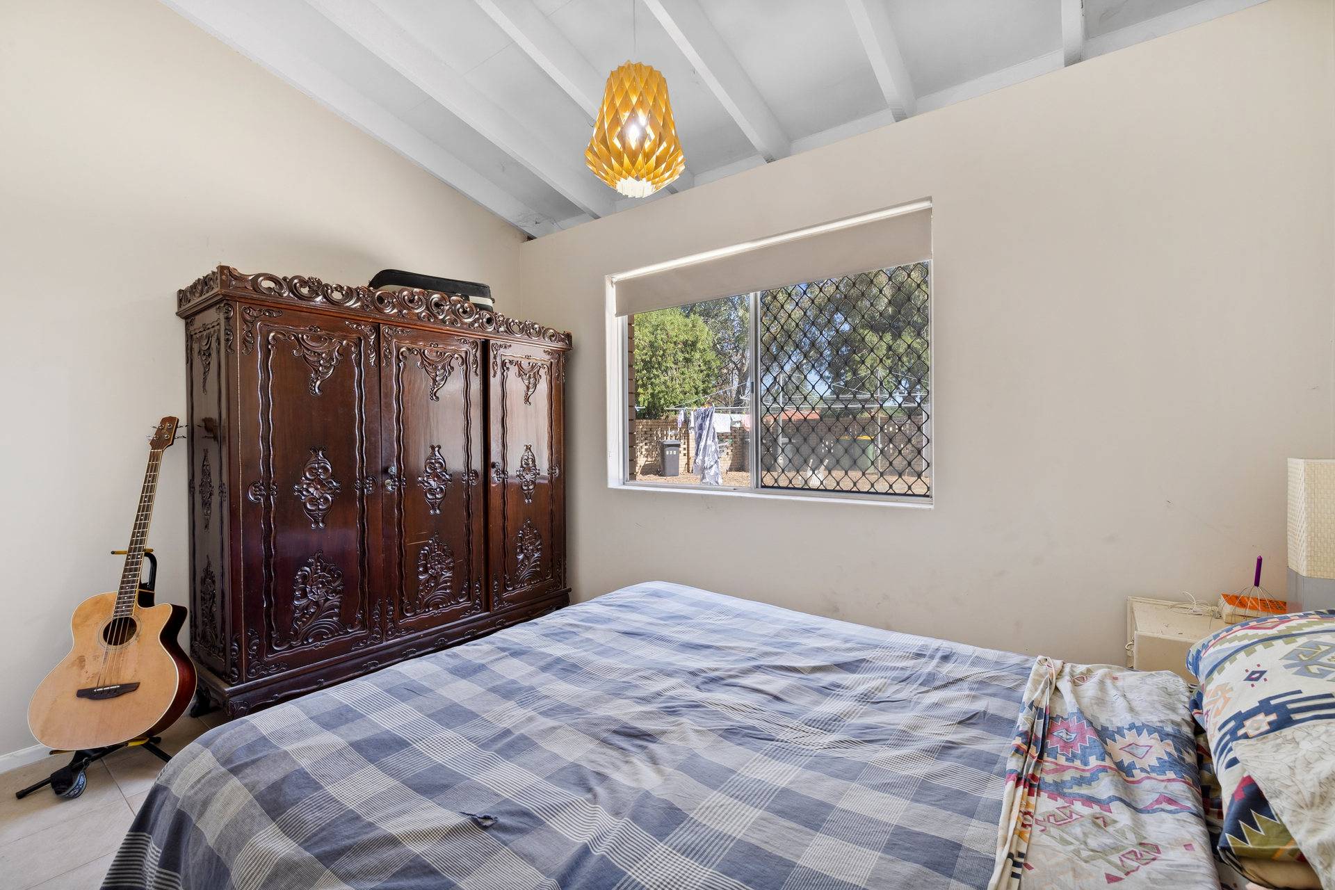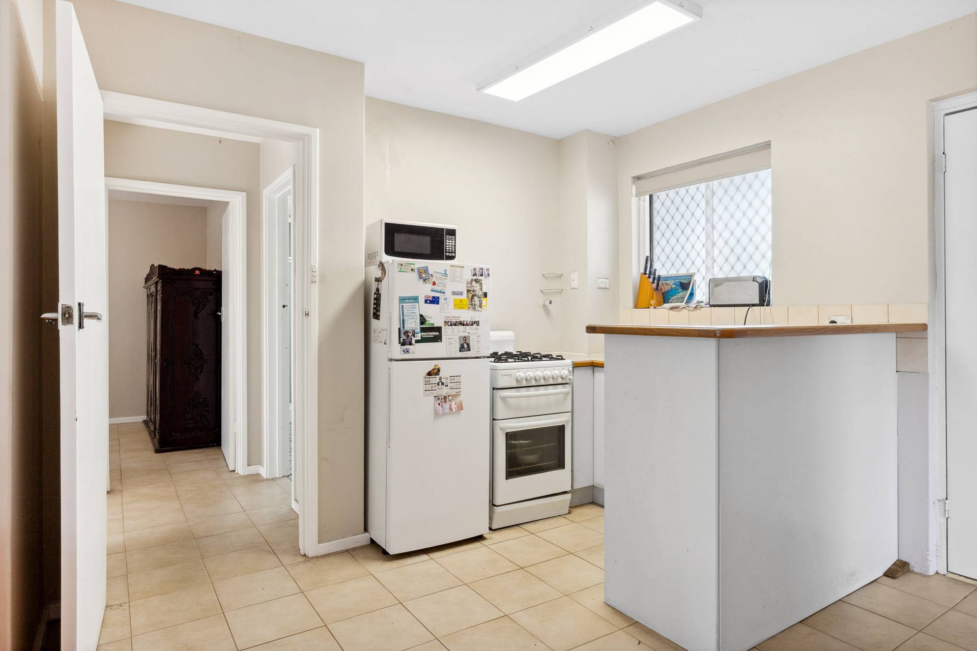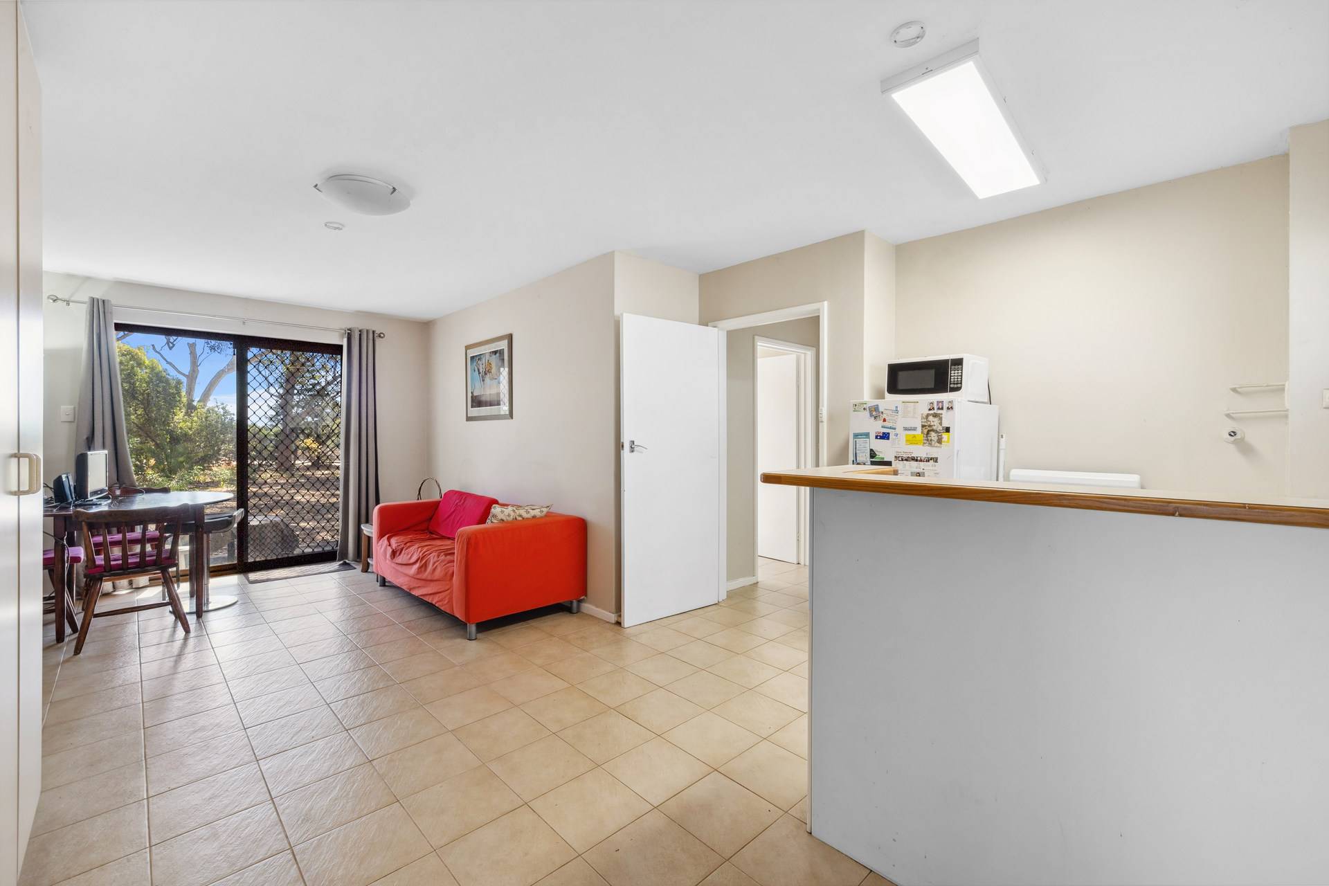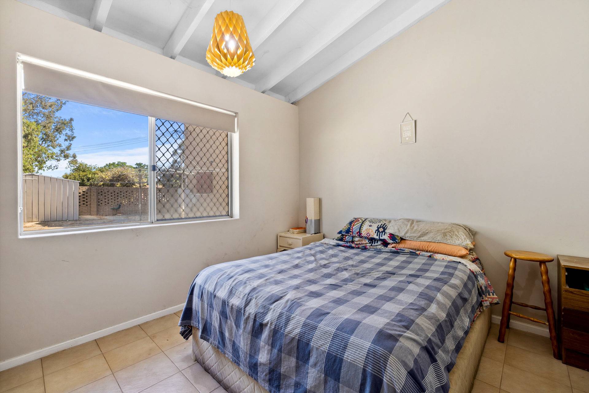 Tiled floors, security screens and roller blinds