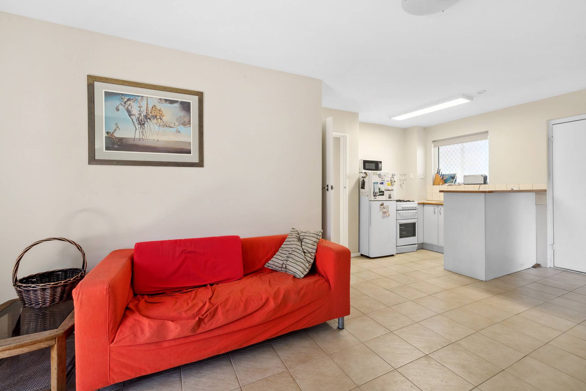With three bedrooms, one featuring a ceiling fan for added comfort, this unit provides ample space. The entire unit is tiled throughout, providing a low-maintenance living environment. The combined bathroom and laundry have been updated with a modern floating vanity and also includes a shower, WC and space for your washing machine and dryer.