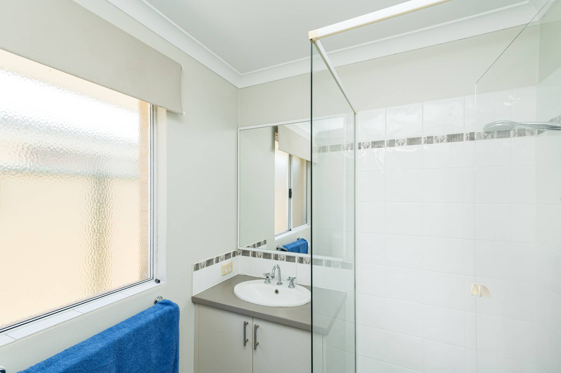 The double-sized minor bedrooms are thoughtfully designed with built-in robes, sharing a family bathroom that includes a tub for added convenience.