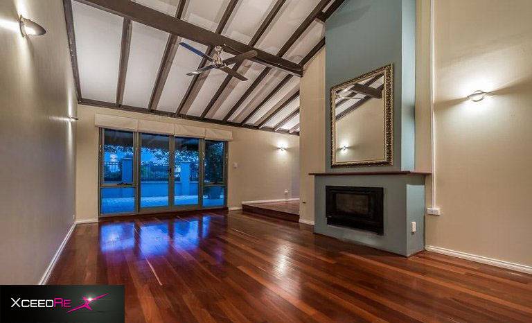 • Spacious living area with Jarrah flooring, gas fireplace, ceiling fan & raked ceilings