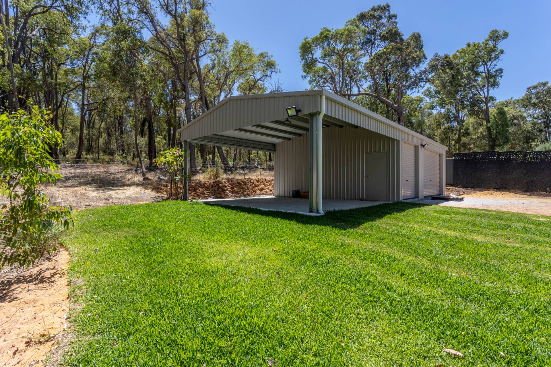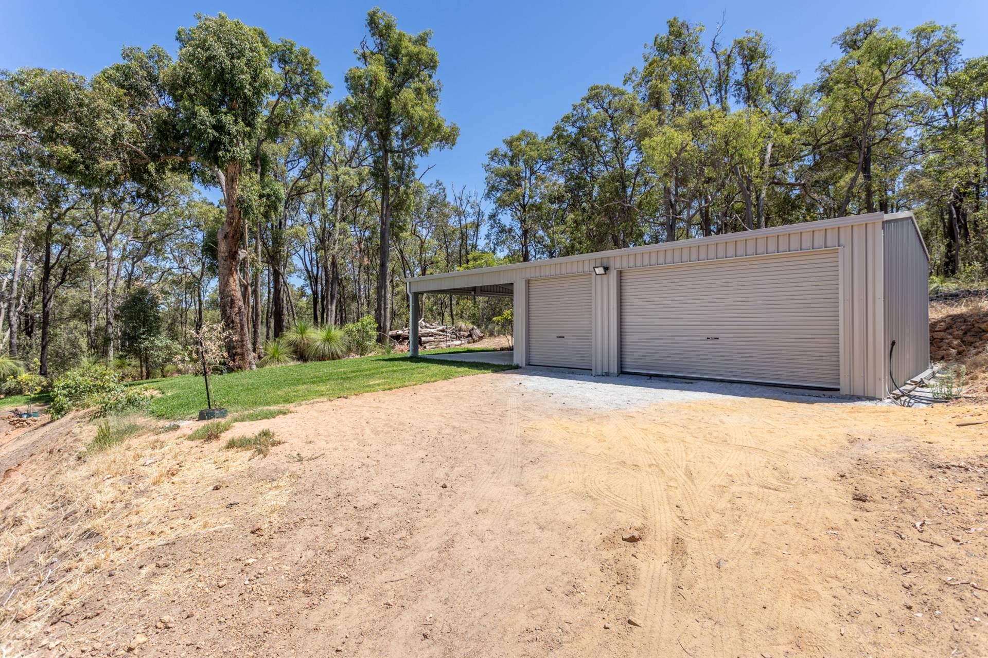 Huge free-standing Colorbond shed/workshop, powered and plumbed, with automatic roller door