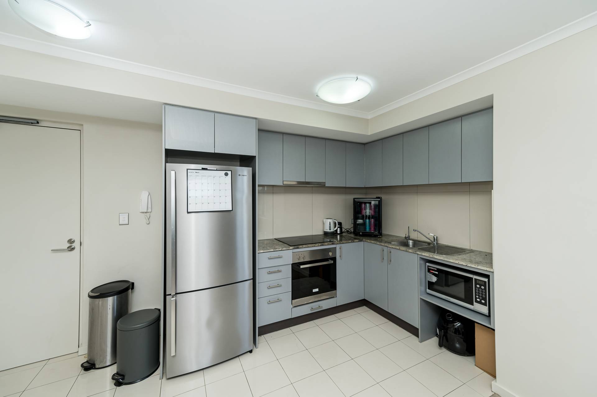 The open living space can be utilised to suit your needs, with room for a home office, dining or sitting area as desired. Blinds along the wall of sliding doors to the balcony provides privacy when needed, and split system air-conditioning will keep you comfortable year-round.