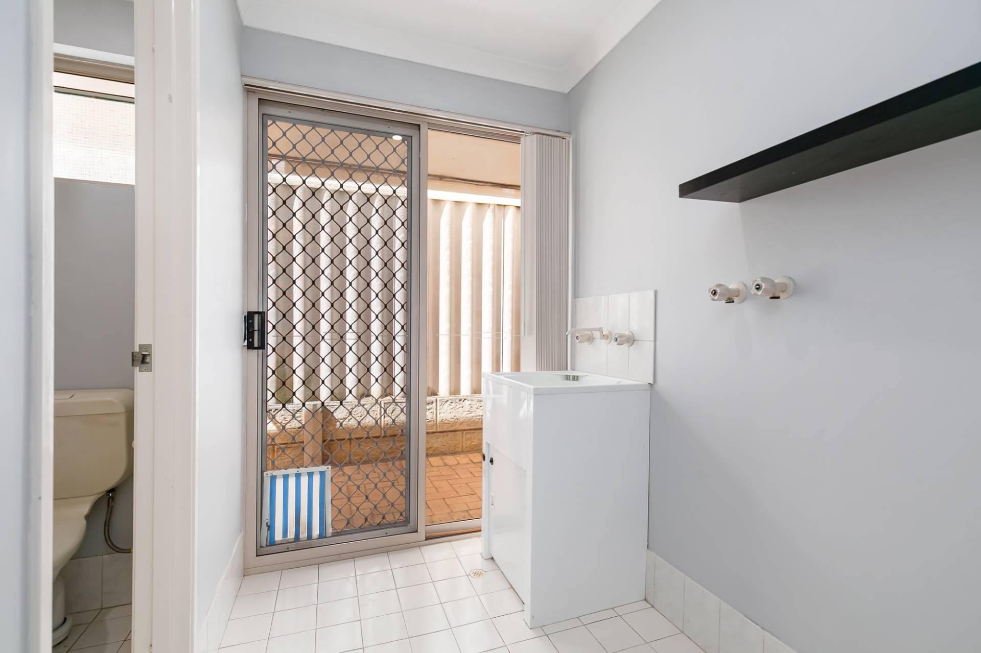 The laundry features a separate second toilet, and there is a built-in linen cupboard.