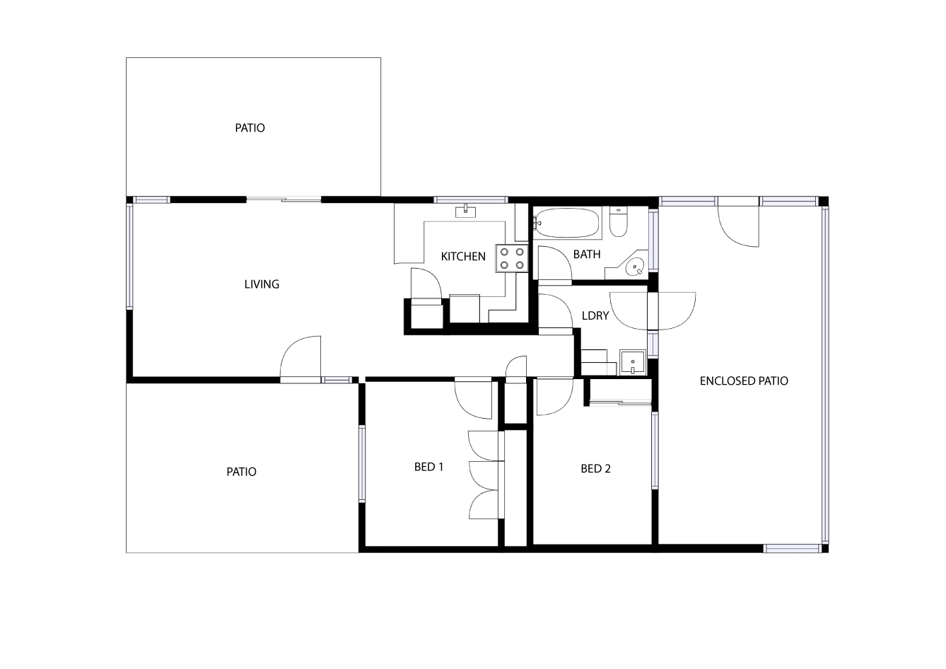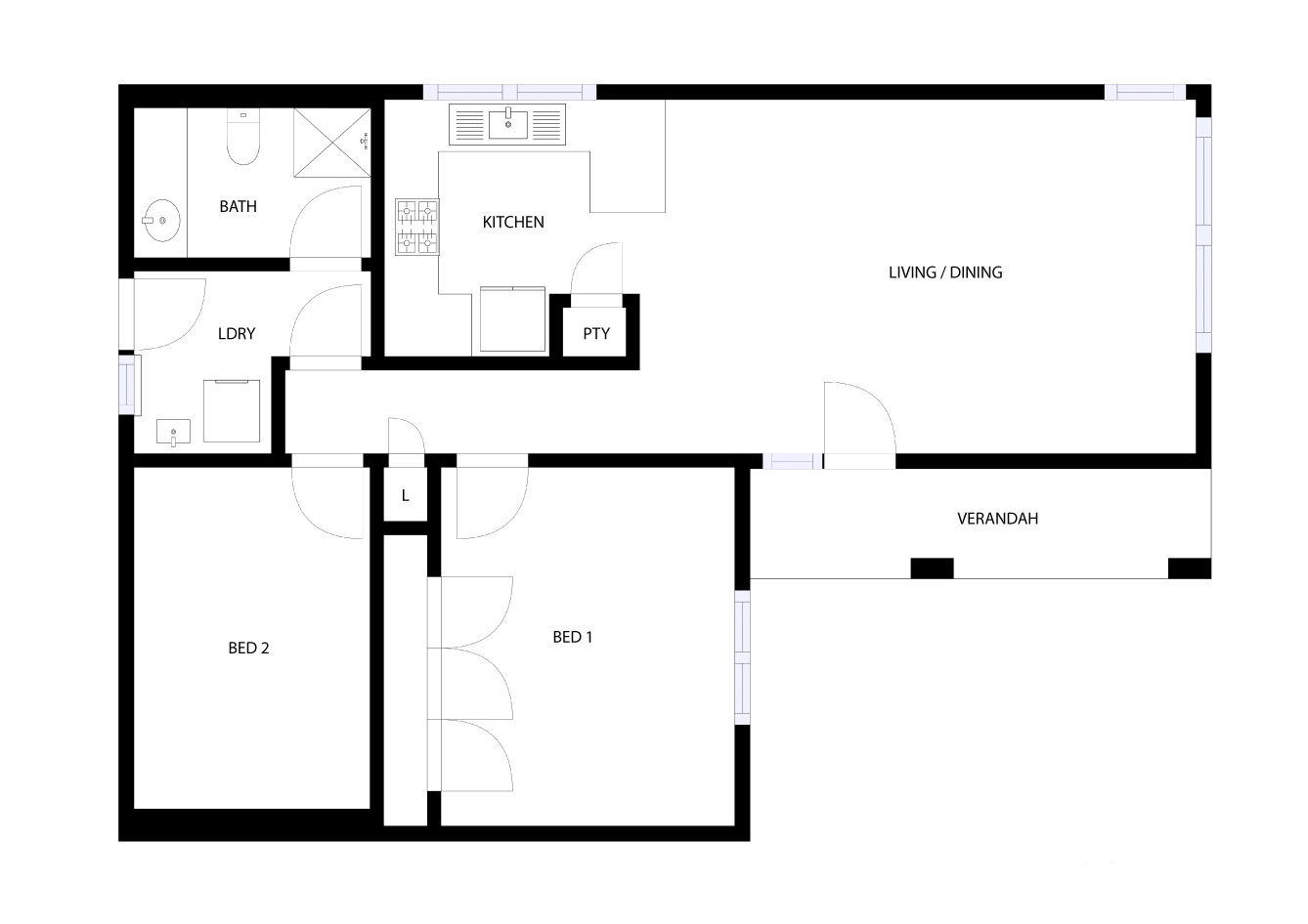 2 bedrooms and 1 bathroom plus open plan kitchen/living/dining areas