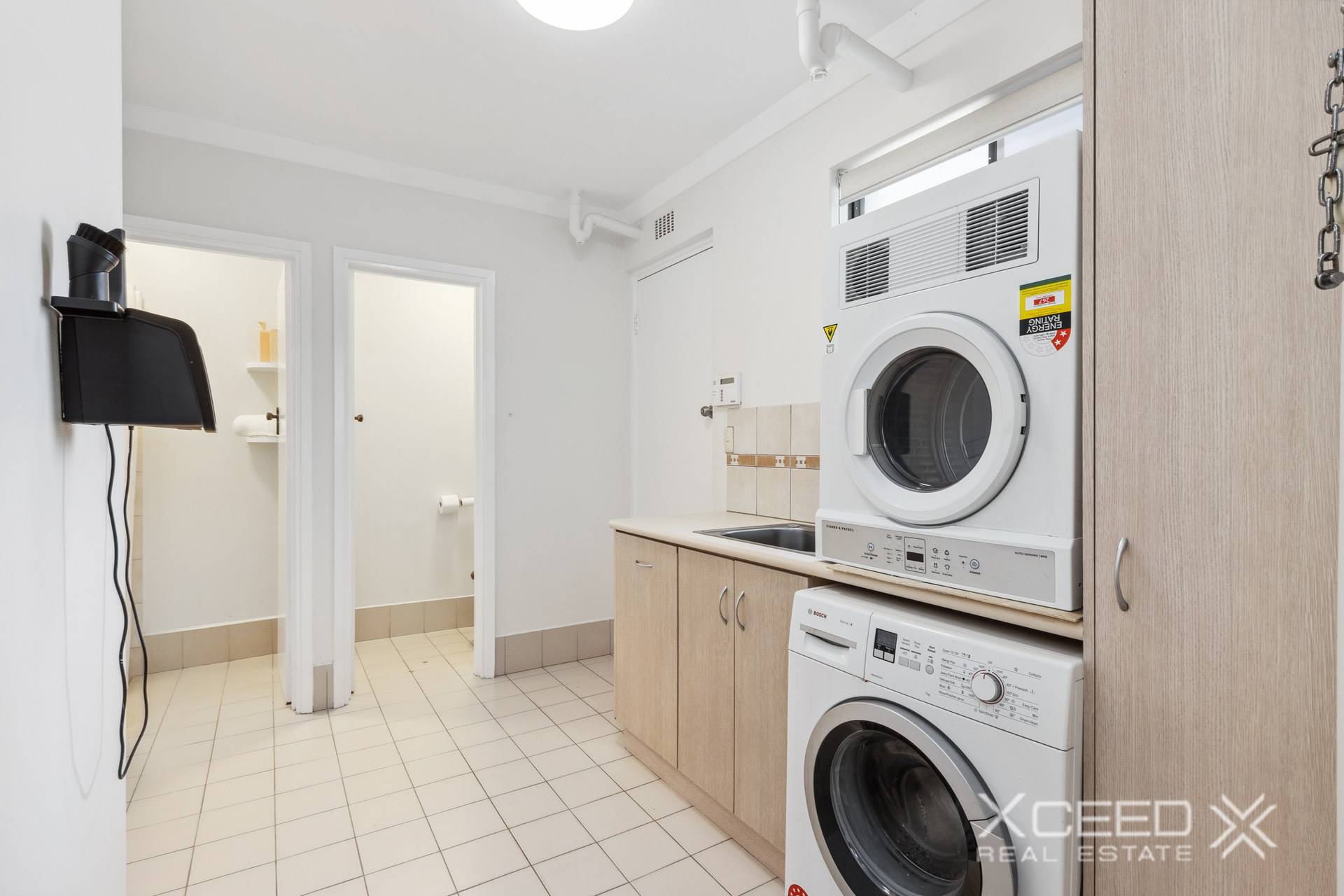 Spacious separate laundry including shower and toilet