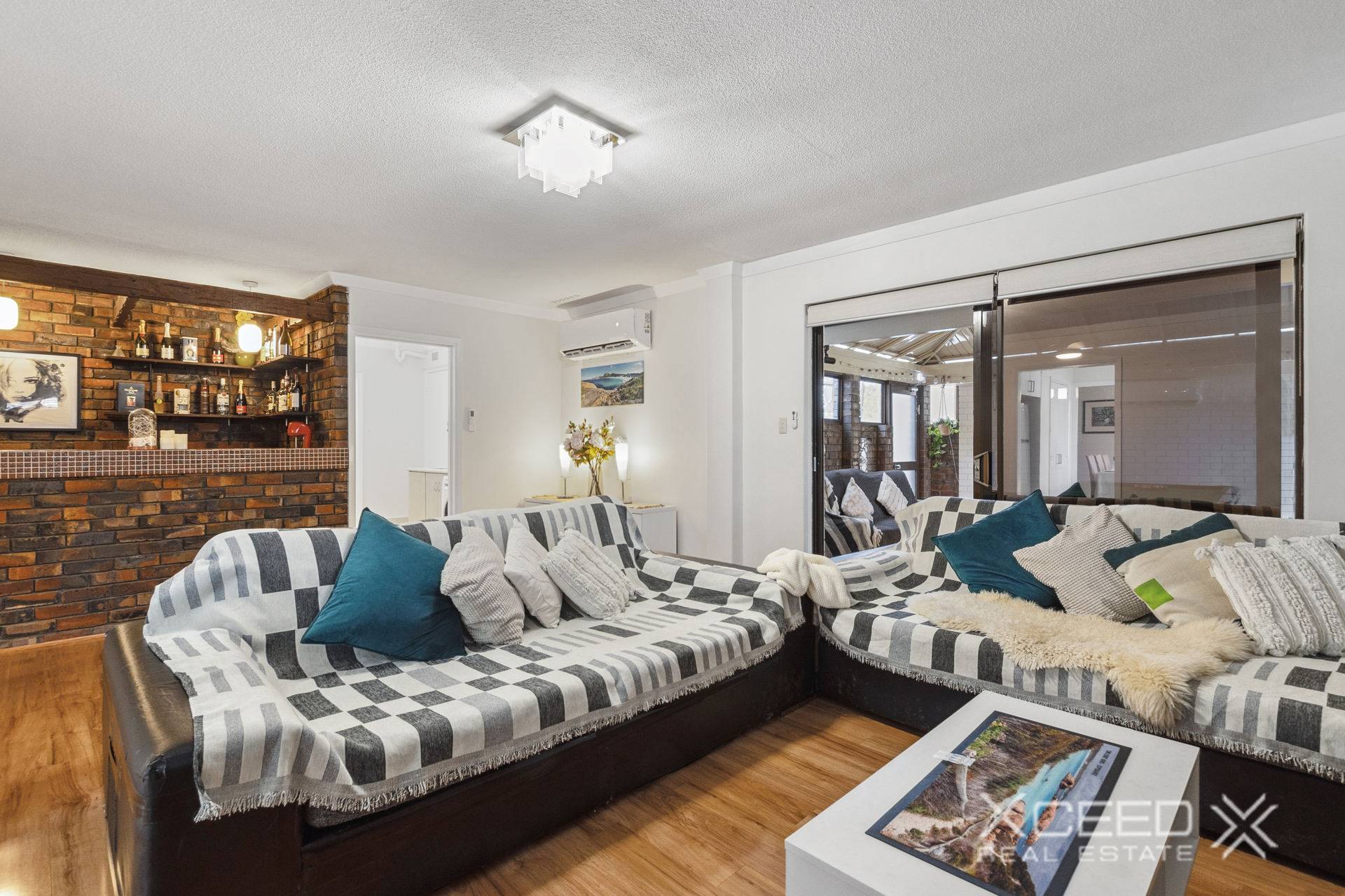 One at front of home, other features bar with fridge recess and split system air conditioning, sliding doors to the alfresco area