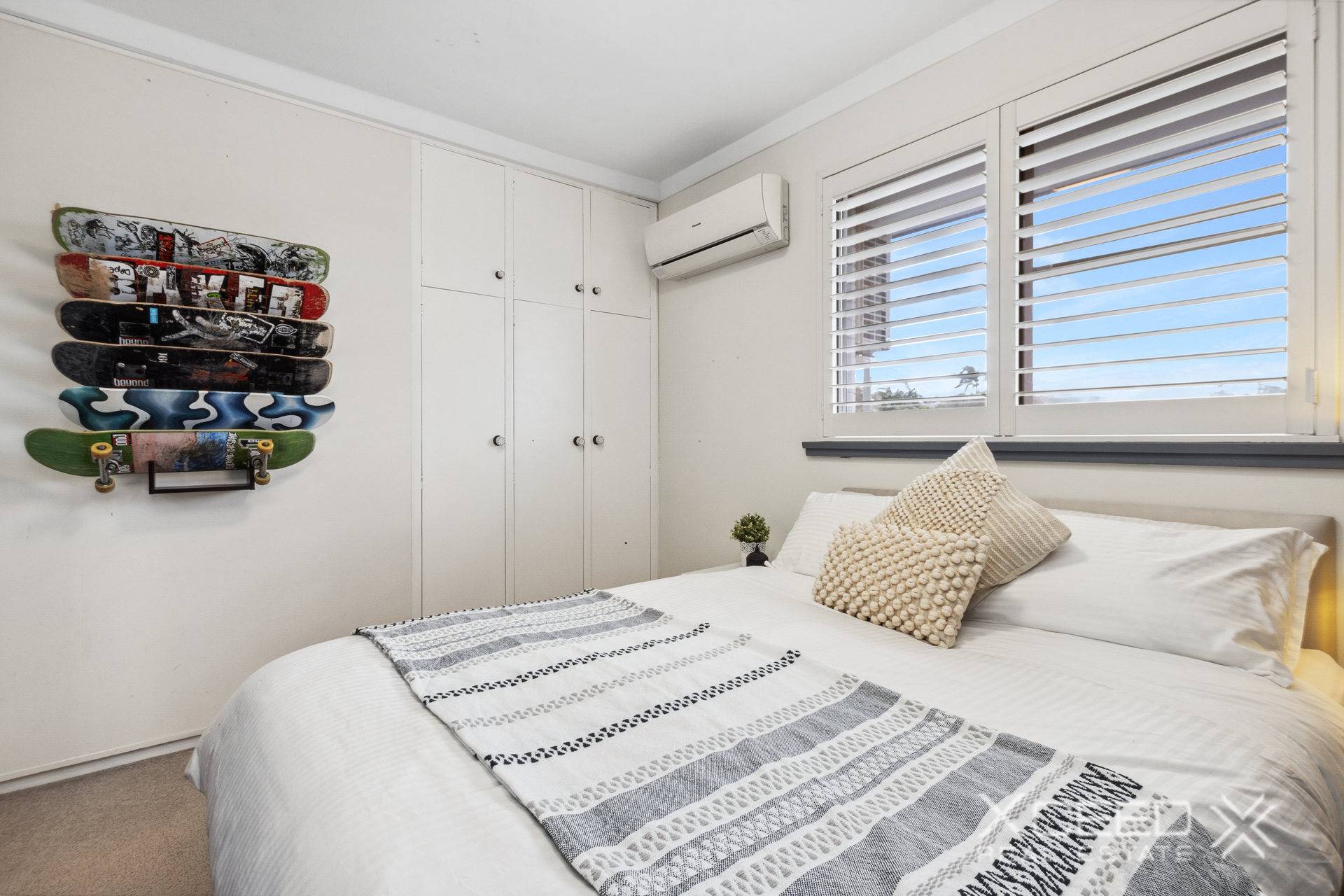 Bedroom downstairs could be converted to a study – features timber style flooring and split system air conditioning