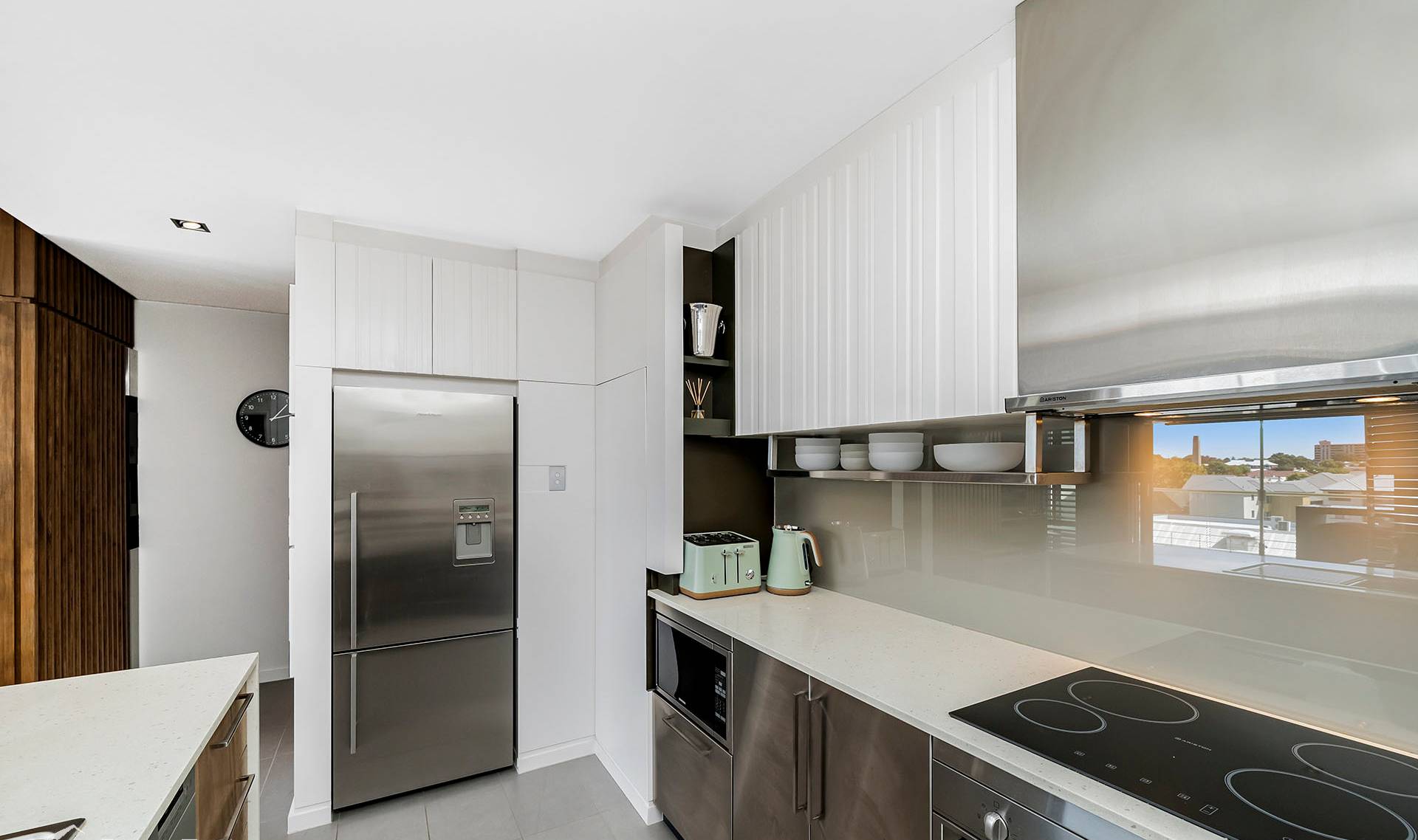 This stylish and private, top-floor apartment, just north of the city is the standout within the complex. Ideally situated across from Moreton Bay fig tree-lined Veld Square, Metropol on Parry consists of two modern, four-storey buildings positioned on the leafy corners of Stirling and Parry Streets. There's ample visitor street parking, and secure, gated onsite parking for residents. Two elevators service each building with a gym, small pool and BBQ area for amenities.