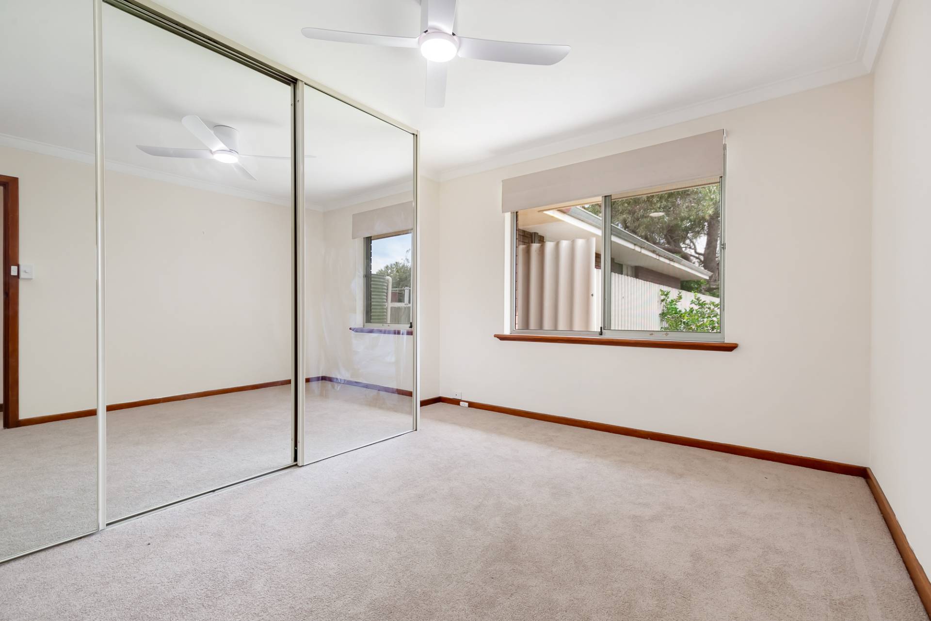 The master bedroom offers ample space, complete with a large three-panel sliding robe and a ceiling fan for added comfort. Bedroom two is generously proportioned, fitting for a queen-sized bed, while the third bedroom provides cozy accommodation ideal for a study or child's room.