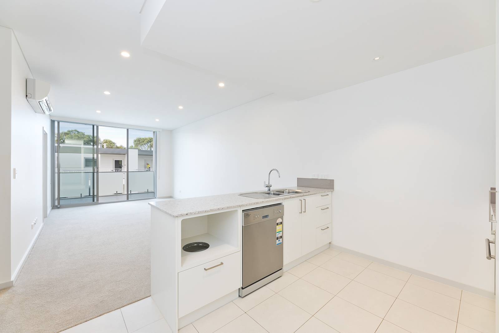 • Bright living/meals area flowing seamlessly to the full-width balcony with glass sliding doors.