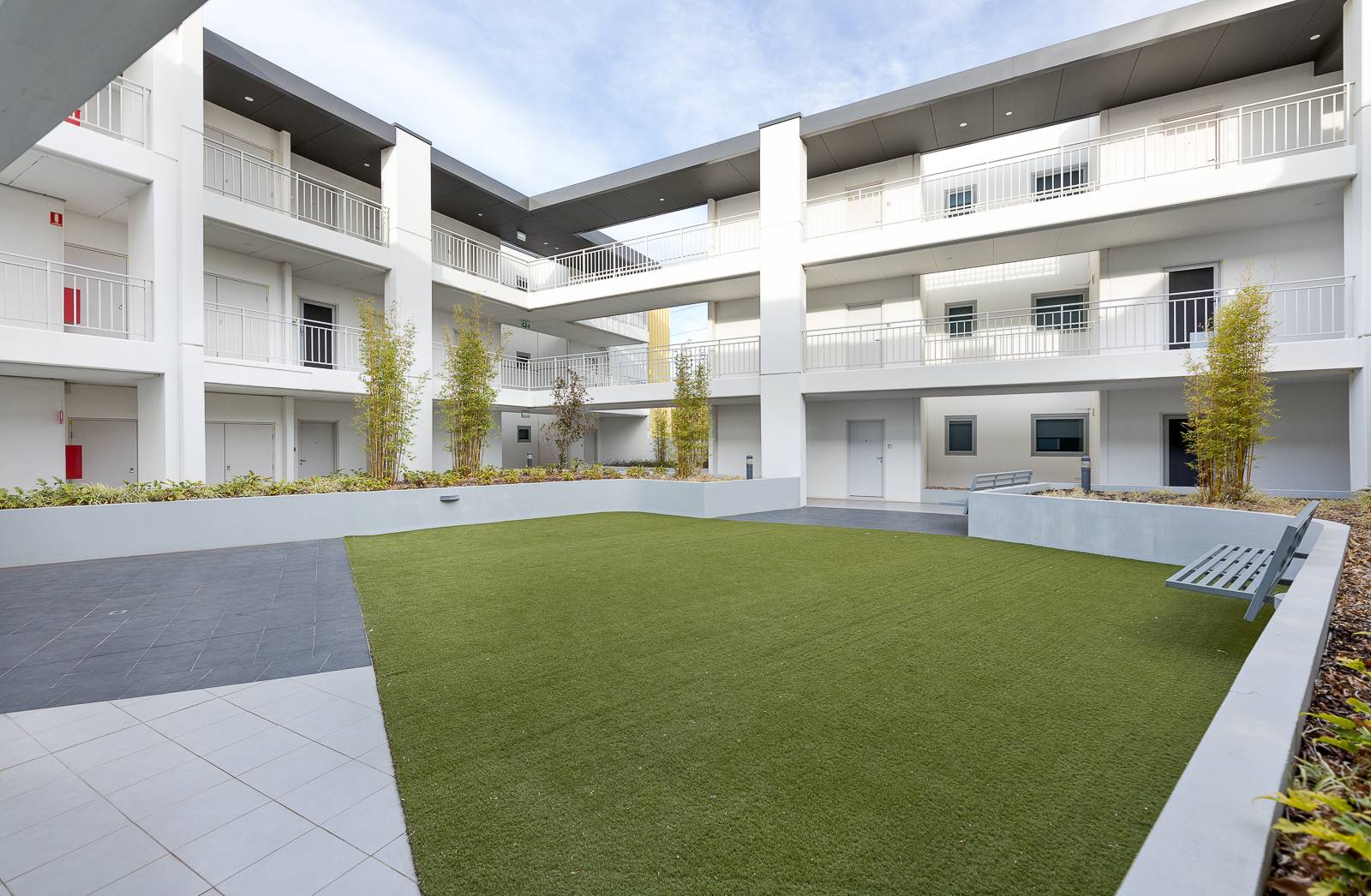 • Second-floor apartment overlooking an expansive communal garden area on the first floor.