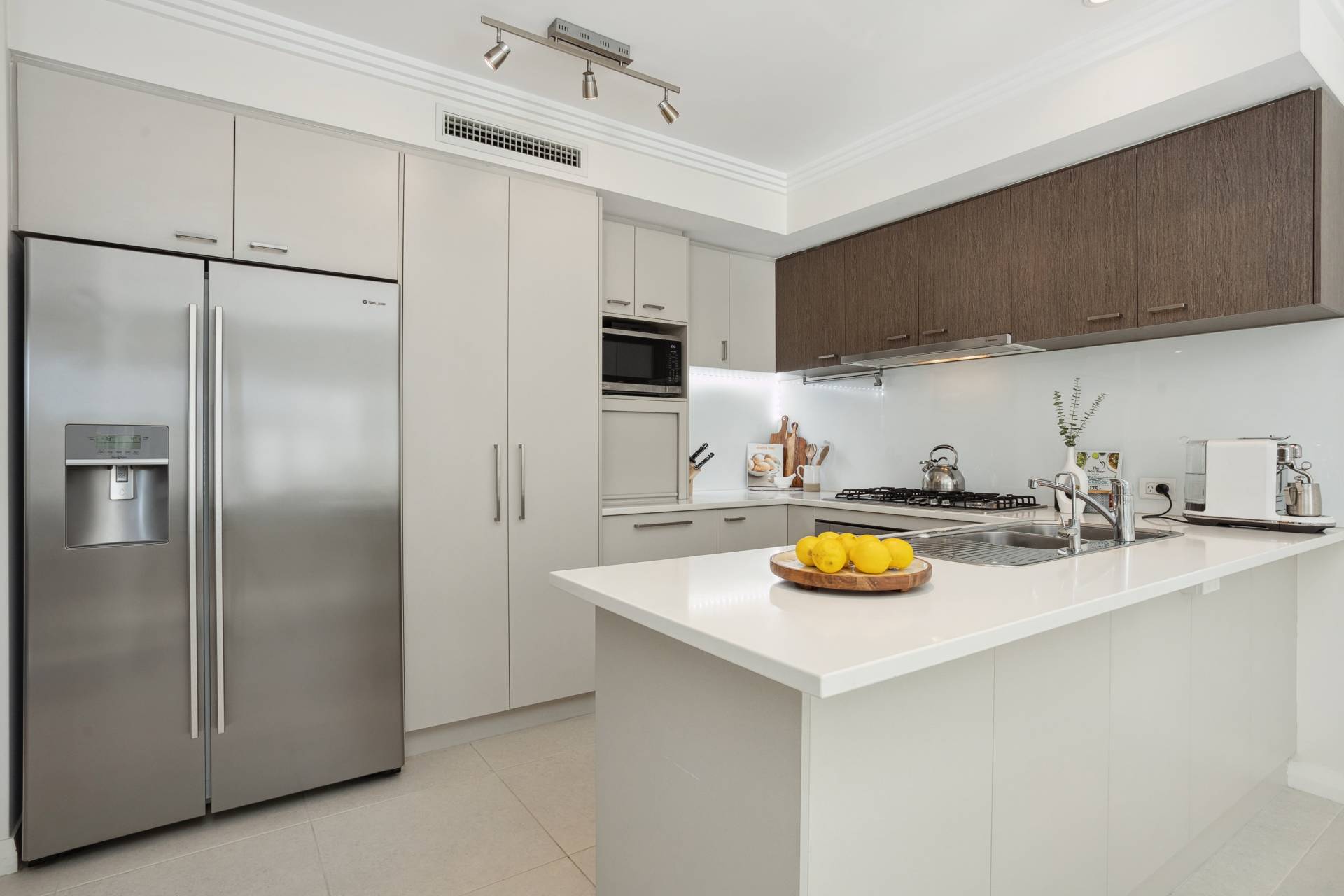 • Modern stone-top kitchen featuring dishwasher, 900mm gas hotplates and under counter oven