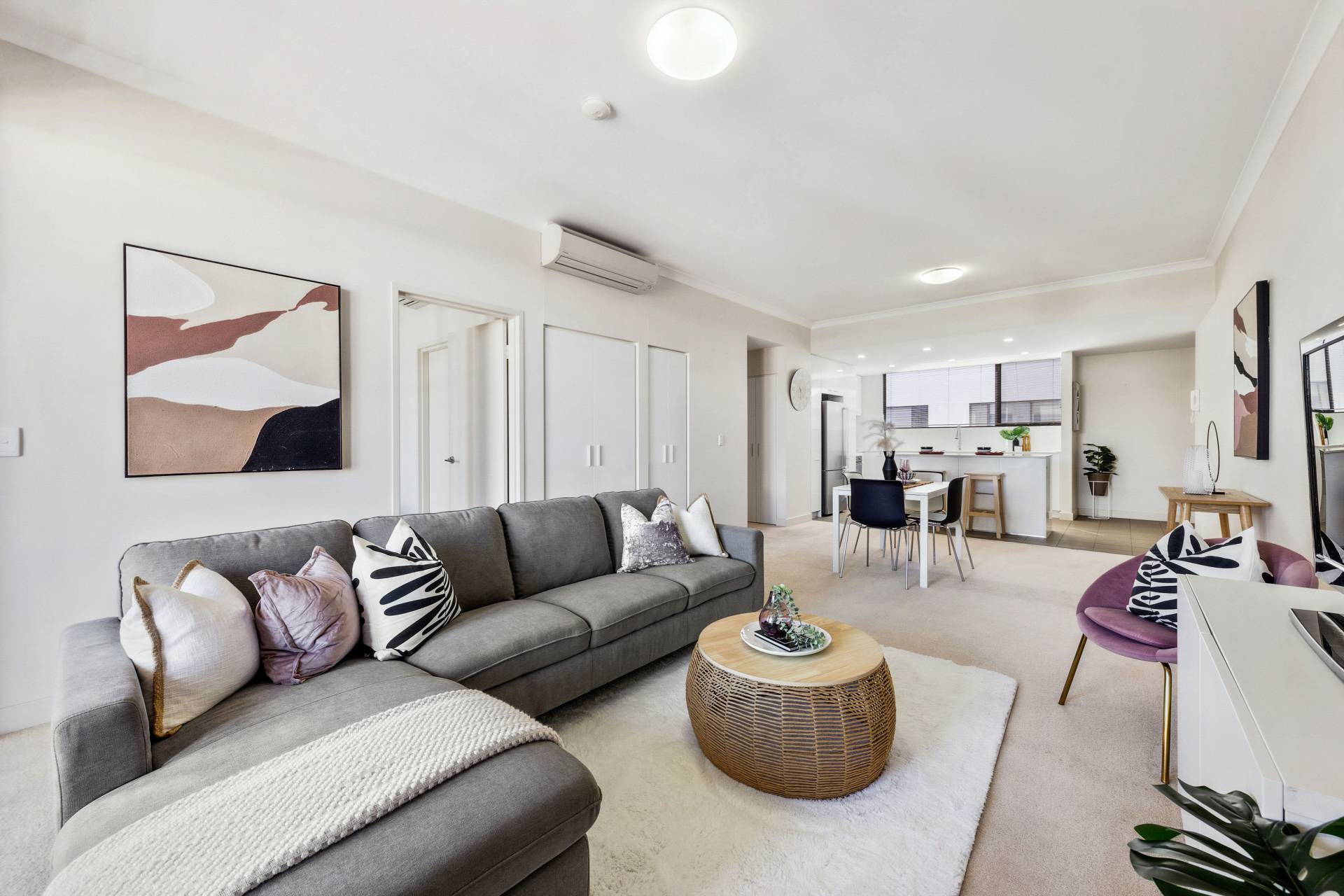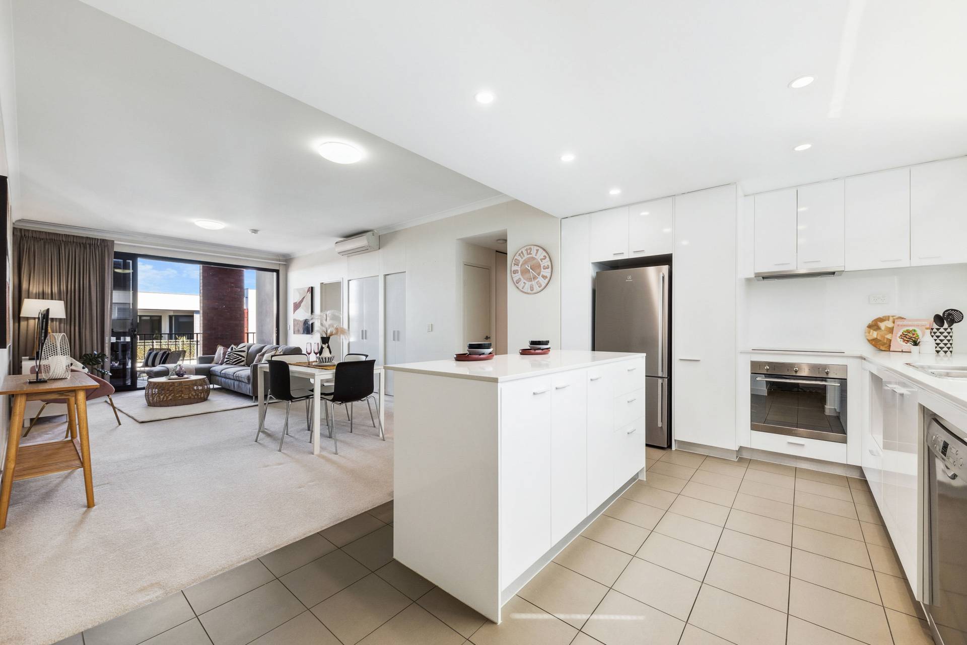 Situated on Level 3, this executive apartment boasts two bedrooms adorned with mirrored robes, two bathrooms featuring sleek stone benchtops, and an airy open plan dining and living area. The gourmet kitchen, complete with dishwasher, fridge, quality appliances and stone benchtops is perfect for those who love cooking. The open plan living/dining area features nice carpet, quality light fixtures and fittings and glass sliding doors which lead out to your own private balcony to enjoy the fresh air.