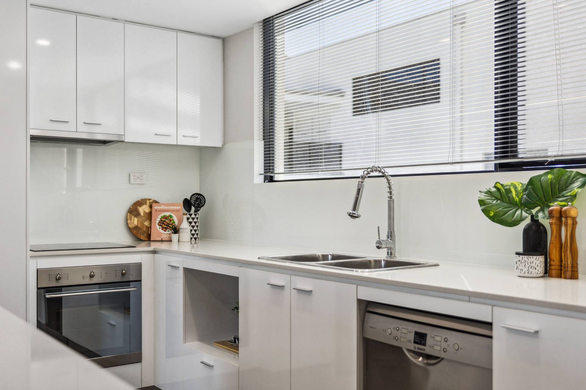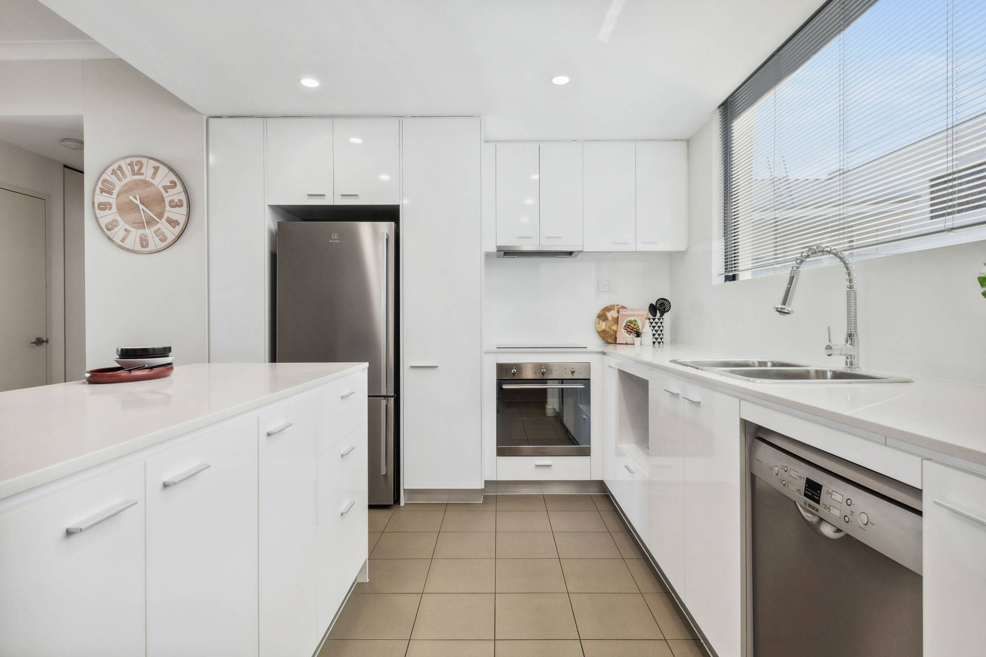• Modern kitchen with spacious stone benchtops and breakfast bar